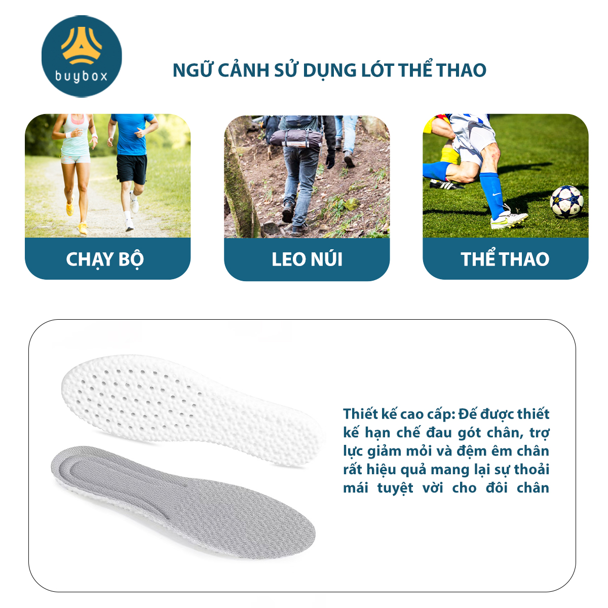 Trong khoảng thời gian làm việc kéo dài 8-10 tiếng mỗi ngày, hoặc 1-3 tiếng chơi thể thao, bạn cần sử dụng loại lót giày tốt, êm ái và hỗ trợ nâng đỡ lòng bàn chân để giảm tải áp lực cho chính đôi chân của mình. Lót giày thể thao làm bằng chất liệu cao su đàn hồi chậm sẽ giúp giảm mỏi lòng bàn chân, khắc phục các tình trạng thốn gót hiệu quả