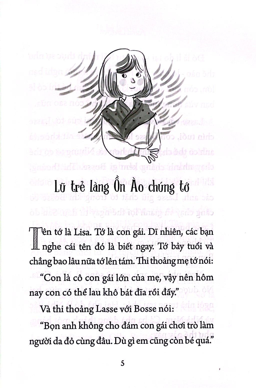 Cứ như thế, mỗi câu chuyện nhỏ trong 3 cuốn sách Lũ trẻ làng Ồn Ào; Làng Ồn Ào vui ơi là vui; và Những ngày hạnh phúc ở làng Ồn Ào sẽ làm chúng m.ình bật cười rúc rích, thỏa sức hòa tâm trí vào những trò nghịch tuổi ấu thơ, sau đó lại có thể ngẫm nghĩ về từng khoảnh khắc đáng giá trong cuộc sống – như nhân vật Lisa đáng yêu vậy: “Tớ nằm đó thức một lúc lâu lắng nghe tiếng rì rào của rừng già. Chỉ là tiếng rì rào khe khẽ thôi. Và những con sóng lăn tăn vỗ nhẹ vào bờ. Những âm thanh đó nghe rất lạ, bỗng nhiên tớ không biết m.ình đang buồn hay đang vui. Tớ nằm đó cố nghĩ xem m.ình vui hay buồn, nhưng chẳng quyết định đượ”