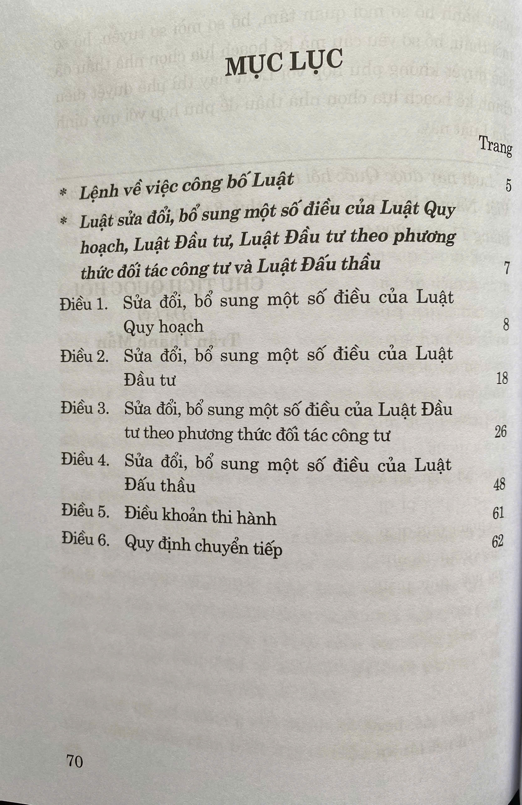 ✨Luật Sửa Đổi, Bổ Sung Một Số Điều Của Luật Quy Hoạch, Luật Đầu Tư, Luật Đầu Tư Theo Phương Thức Đối Tác Công Tư Và Luật Đấu Thầu Năm 2024