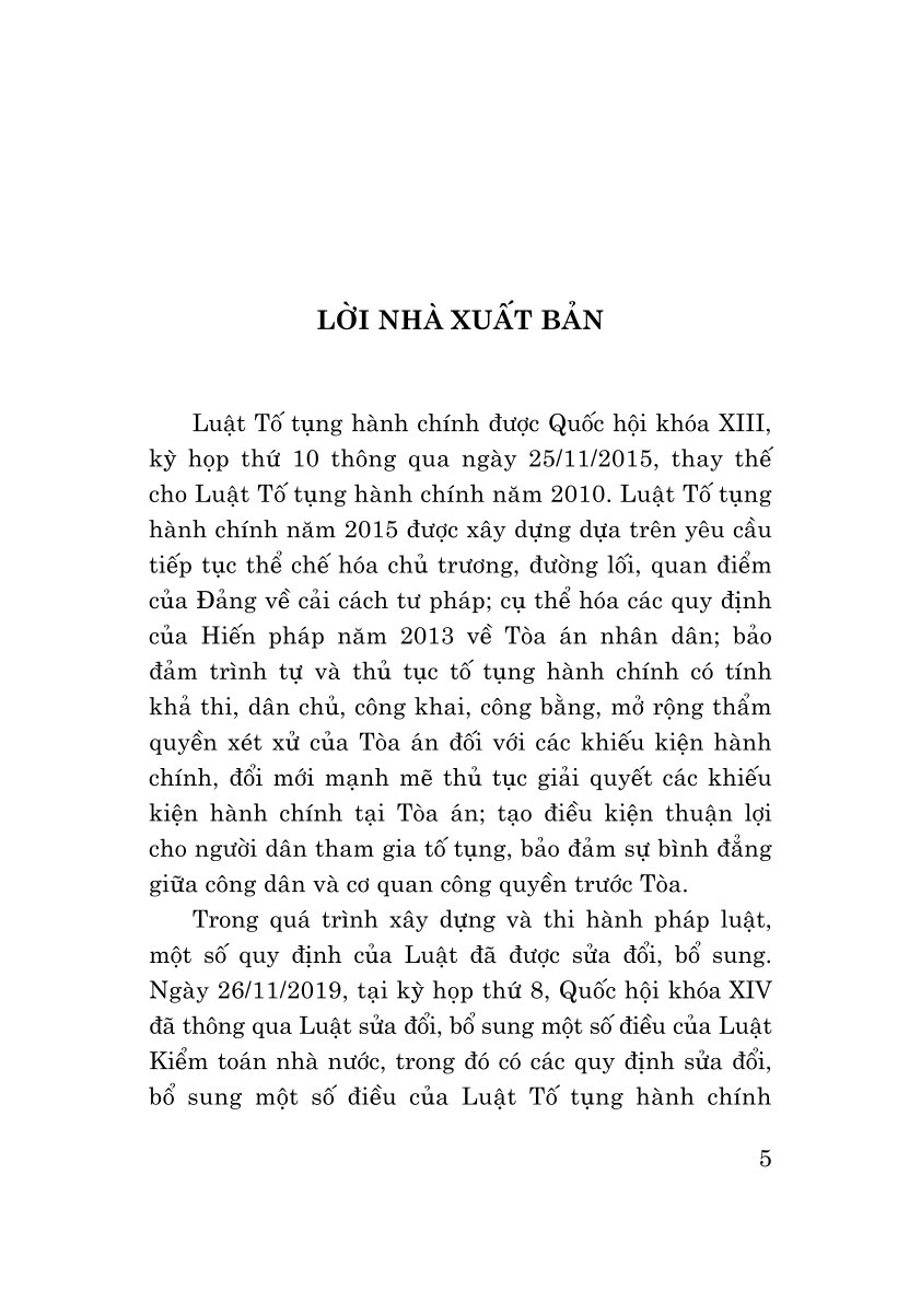 Mua tại TiktokNhằm đáp ứng nhu cầu của bạn đọc trong việc nghiên cứu, tìm hiểu, áp dụng pháp luật một cách thuận tiện, đầy đủ và thống nhất, Nhà xuất bản Chính trị quốc gia Sự thật xuất bản cuốn sách Luật Tố tụng hành chính năm 2015 (sửa đổi, bổ sung năm 2019, 2024, 2025). Nội dung cuốn sách là văn bản hợp nhất của Luật Tố tụng hành chính năm 2015 và các nội dung sửa đổi, bổ sung từ ba văn bản luật nêu trên.