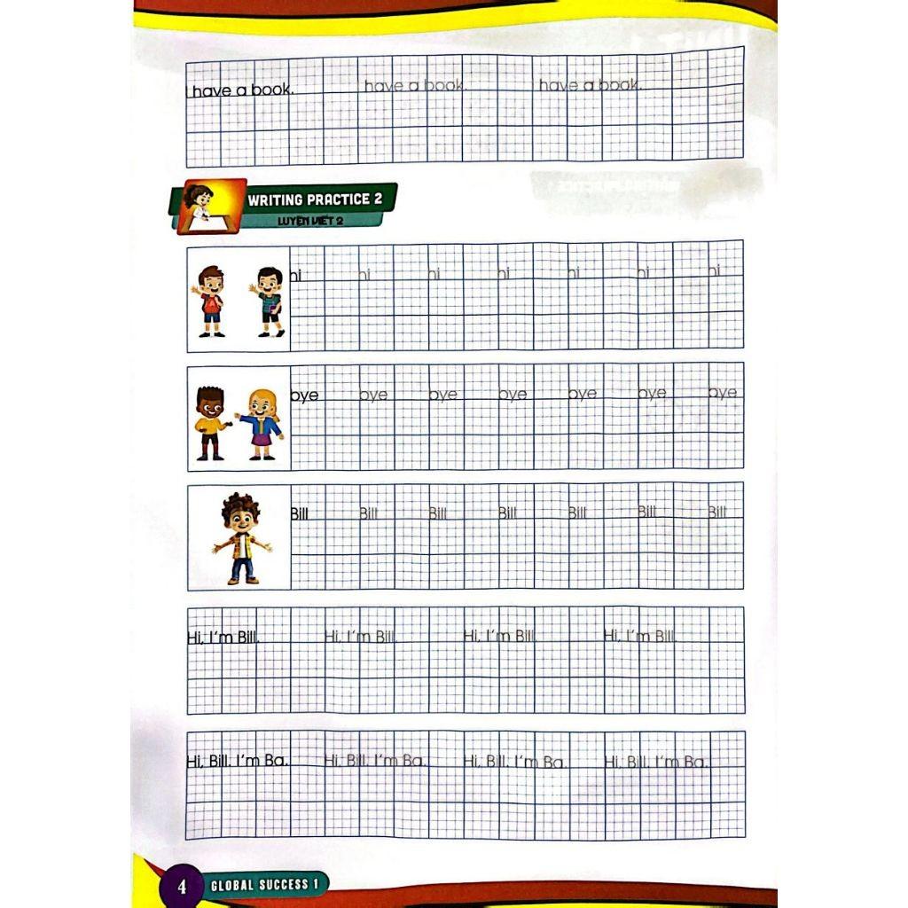 Mua tại TiktokSách - Luyện Viết Để Nhớ Từ Vựng Tiếng Anh Lớp 1 (Bám Sát SGK Global Success 1) (HA) Lời nói đầu Các em học sinh thân mến! “LUYỆN VIẾT ĐỂ NHỚ TỪ VỰNG TIẾNG ANH 1” được biên soạn nhằm giúp các em bước đầu làm quen với các từ vựng và mẫu câu tiếng Anh đơn giản, đồng thời đây cũng là tài liệu để các em luyện tập kĩ năng viết tiếng Anh. Cuốn sách được biên soạn bám sát SGK Tiếng Anh 1 - Global success 1 với bố cục gồm hai phần: Writing Practice và Exercise. Trong đó:
