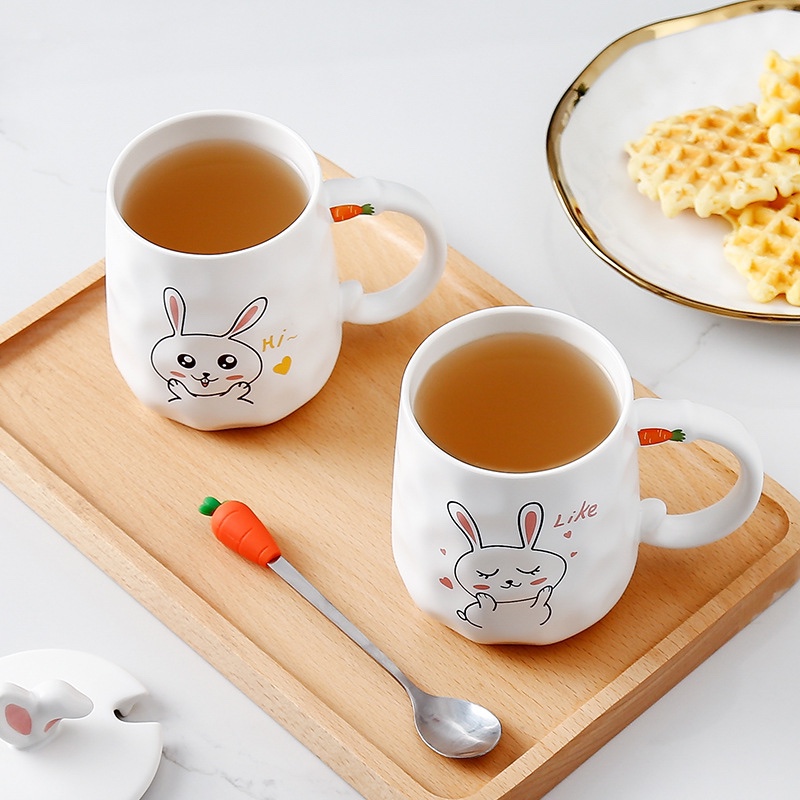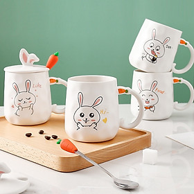 ✨Ly cốc sứ thỏ có nắp sứ và muỗng Inox - món quà ý nghĩa