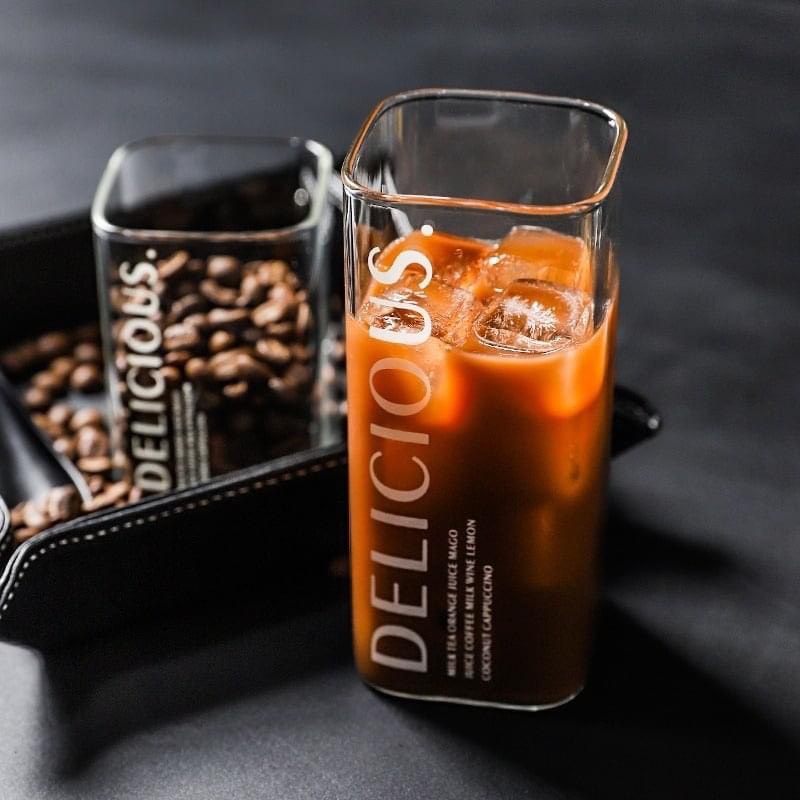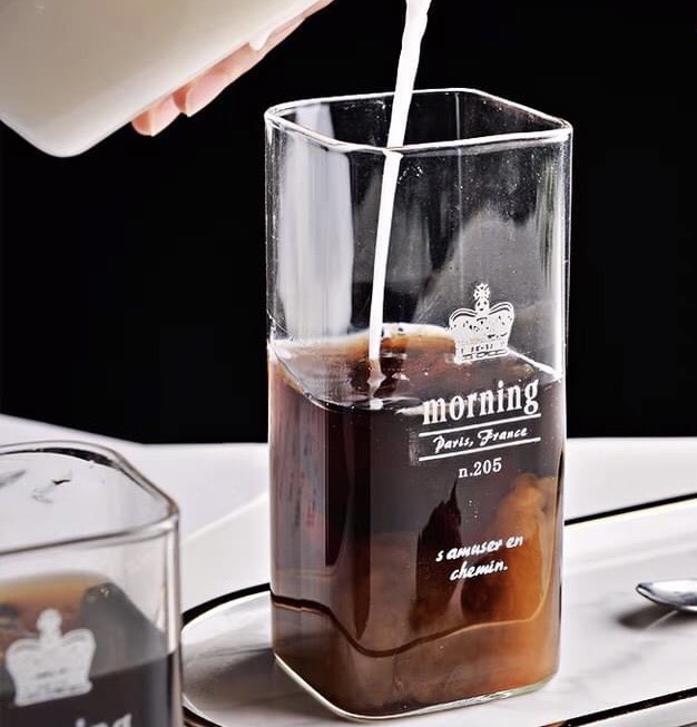 Ly thủy tinh vuông chịu nhiệt MILK TEA 400ml cao cấp sang chảnh phong cách Vintage dung uống sinh tố TiTi Room - Bạn lấy voucher cửa hàng và miễn phí vận chuyển để áp