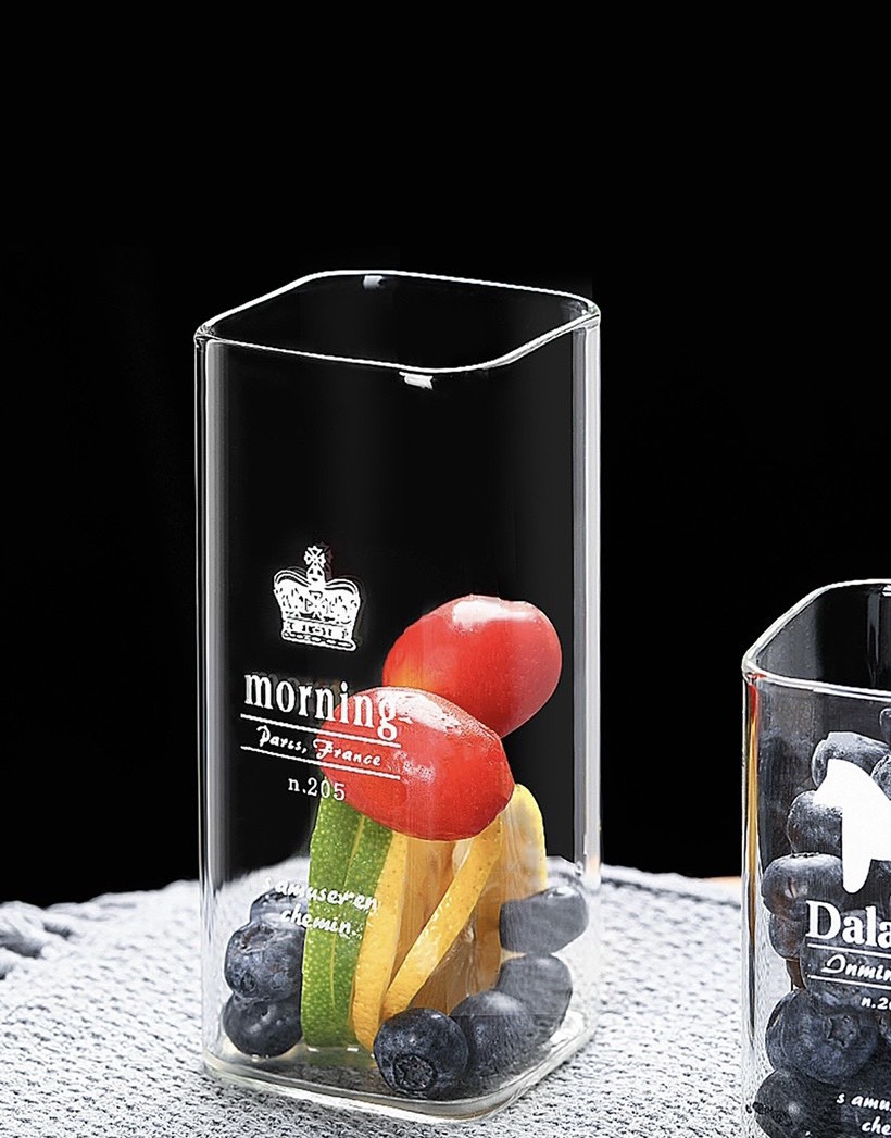 Chiếc cốc vuông kiểu Anh, thiết kế in chữ kiểu đơn giản, năng động và phong cách với thân cốc trong suốt, mang đến cho bạn tâm trạng thoải mái. Một trong các mặt của cốc có thiết kế hơi lõm với các đường gân để dễ cầm. Đồ trang trí tinh tế, phong cách và cá tính, không chỉ làm cốc uống nước, mà còn làm đồ trang trí máy tính để bàn