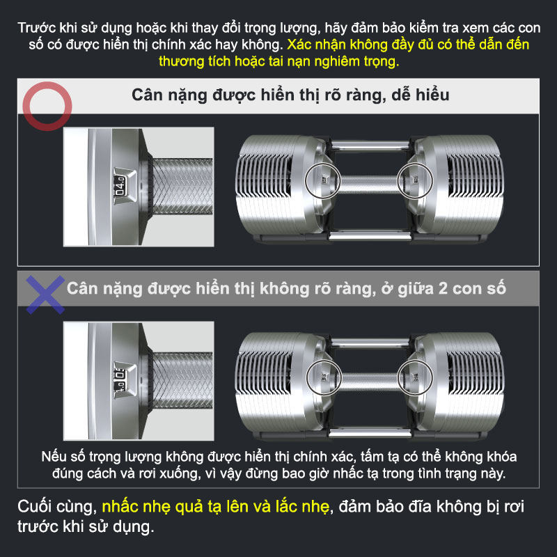 Mô Tả Sản Phẩm Bộ 2 Tạ Tay 48kg Điều Chỉnh Khóa Số Tự Động Cao Cấp mỗi bên 24kg (ảnh thực tế) Màu sắc : Toàn bộ sản phẩm được sơn đen