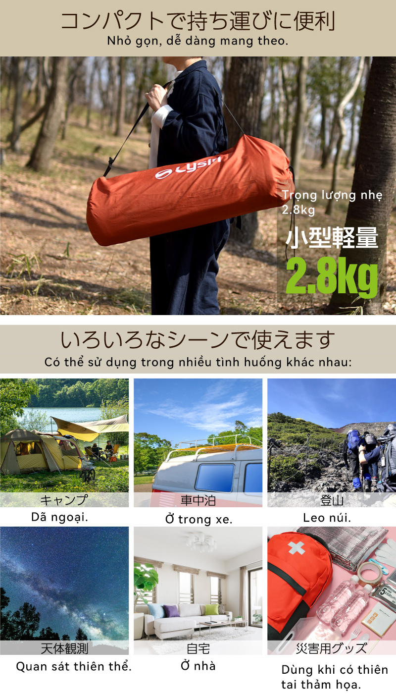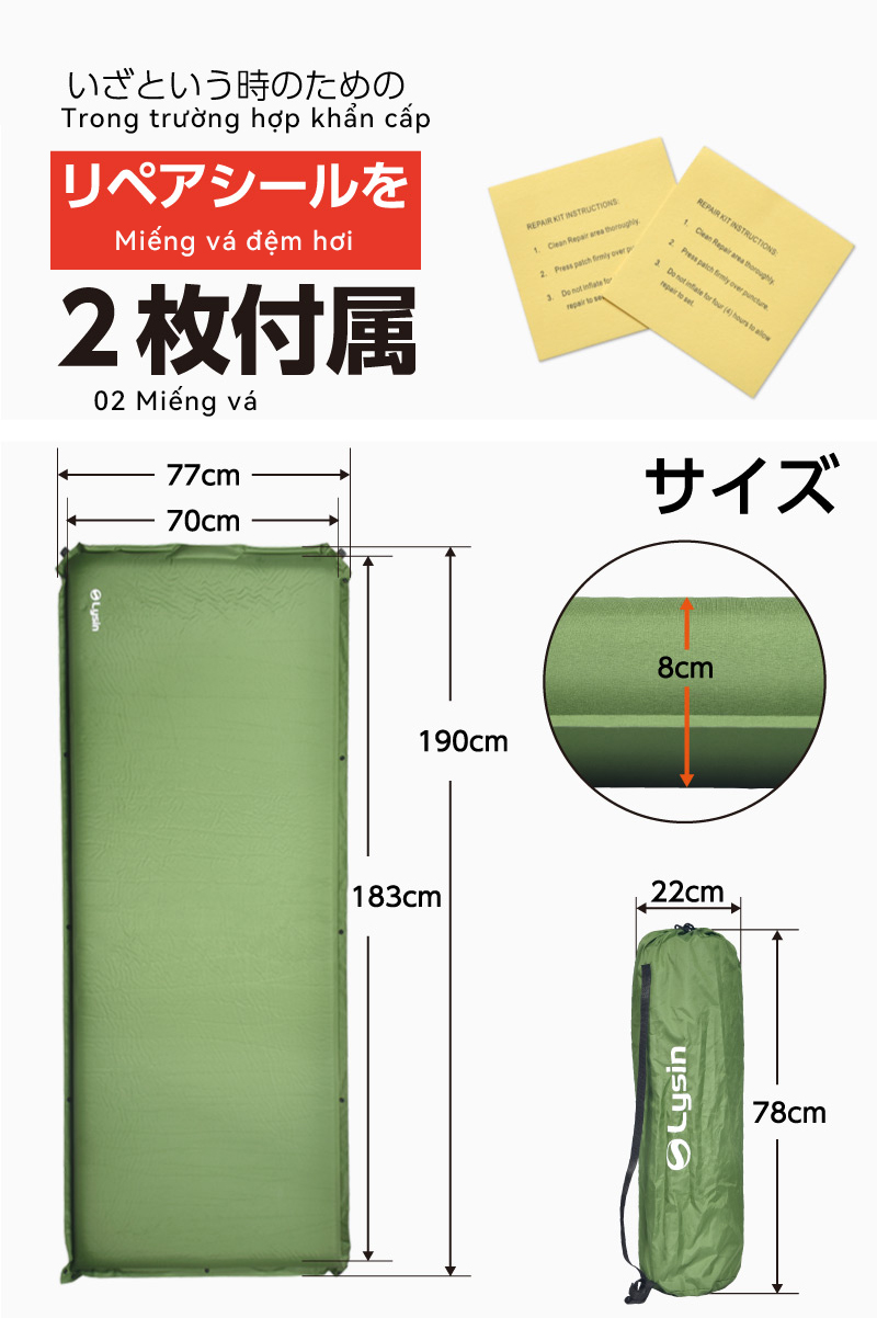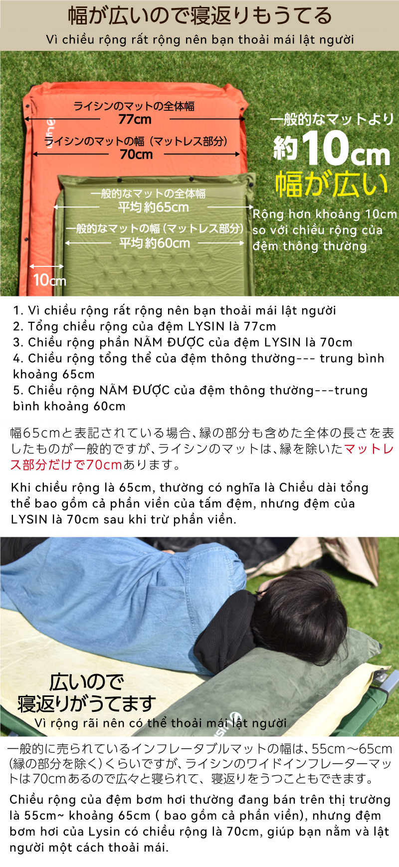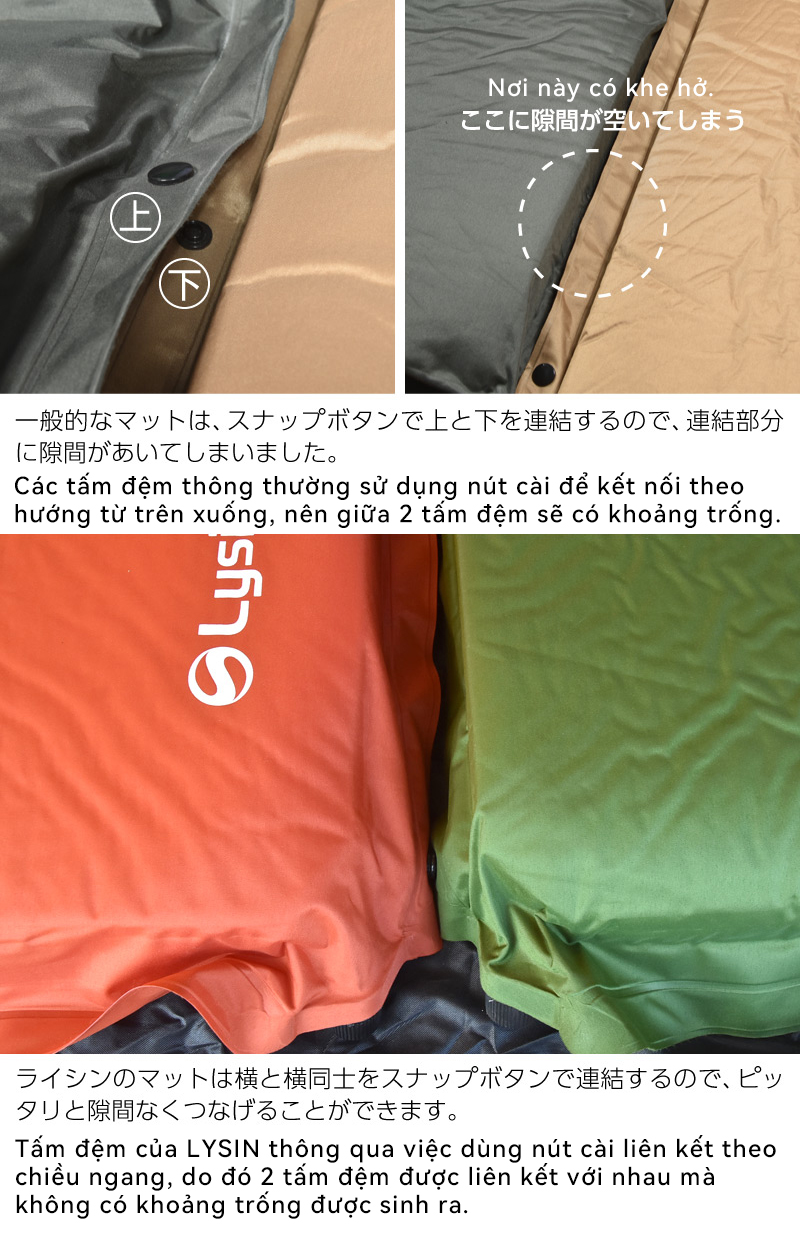 ✨Lysin - đệm nằm dã ngoại (rộng 70cm dày 8cm, chất liệu polyetylen) tự bơm hơi thoảng mái chống thấm nước cắm trại ngoài trời, picnic, du lịch camping có thể liên kết với nhau