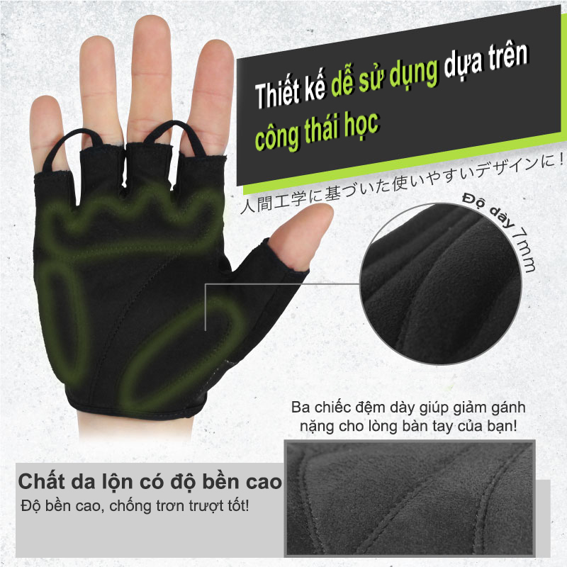 ✨Lysin - găng tay bọc nửa ngón tập gym, thể dục, xe đạp, tạ lure, câu cá, xe máy chống trượt bảo vệ tay thương hiệu Nhật bản