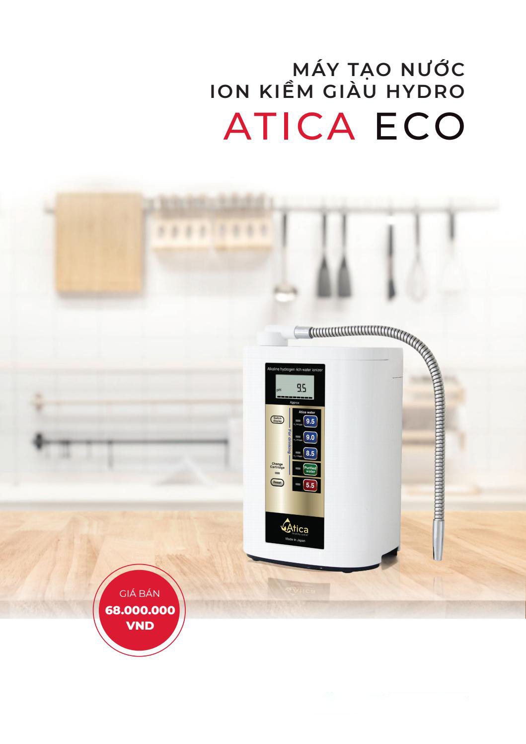 Máy lọc nước ion kiềm giàu hydro Atica chuyển giao công nghệ từ Nhật Bản dành cho máy lọc nước RO