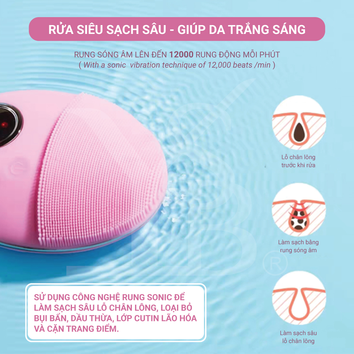 Máy rửa mặt công nghệ siêu âm bổ sung ION 3in1 Nanotime F62 - Sản phẩm chính hãng bảo hành 24 tháng Công nghệ làm sạch kép Máy rửa mặt ION 3in1 Nanotime F62 ứng dụng