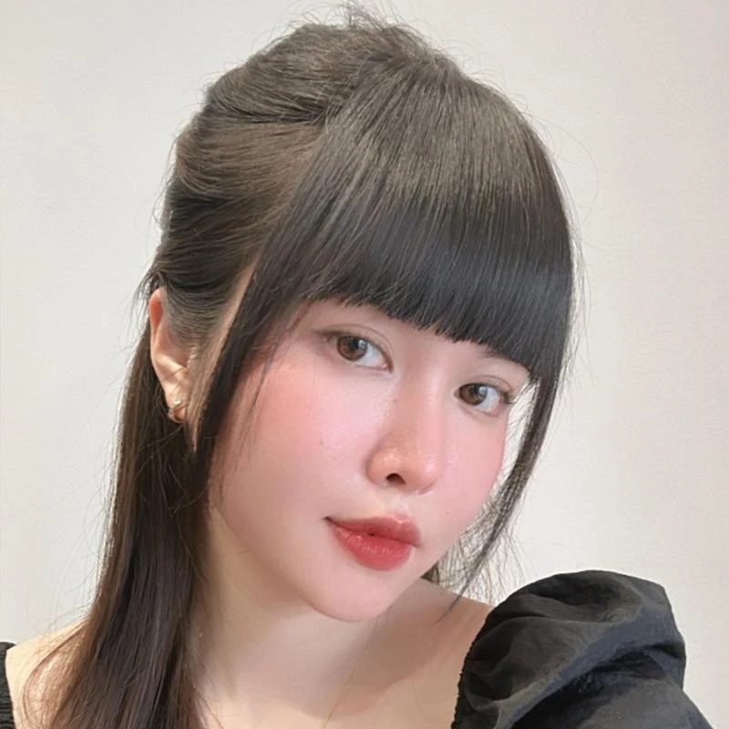 THÔNG TIN SẢN PHẨM: Loại: Mái Hime mái dày Chất liệu: Tóc th.ậ t 100% Uốn, Ép, Nhuộm đều được. Màu sắc: Màu nâu trầm, Màu nâu socola, Màu nâu sáng, Màu