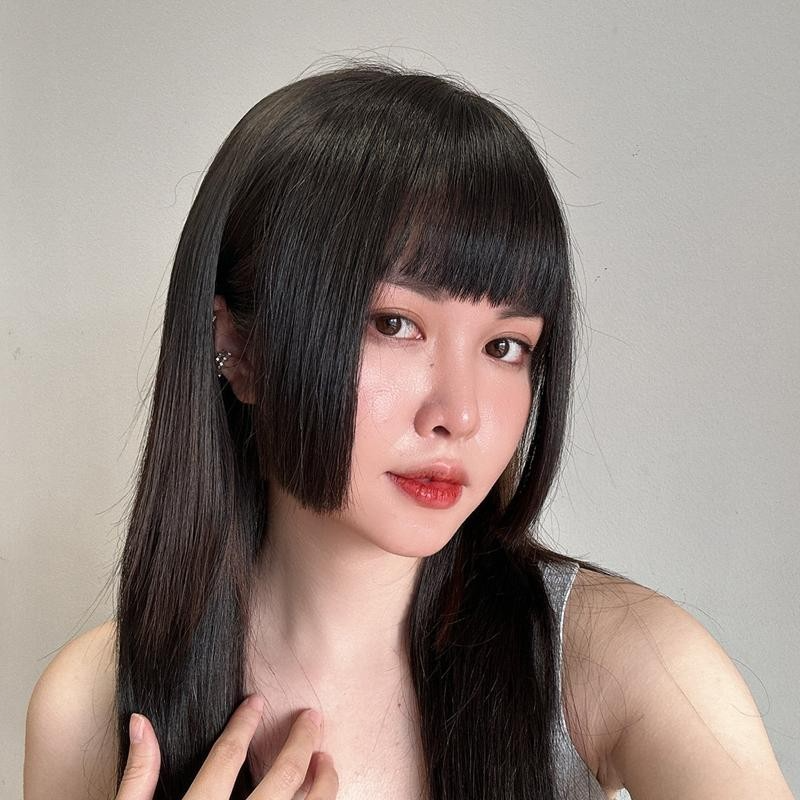 THÔNG TIN SẢN PHẨM:   Loại: Mái Hime mái dày   Chất liệu: Tóc th.ậ t 100% Uốn, Ép, Nhuộm đều được.   Màu sắc: Màu nâu trầm, Màu nâu socola, Màu nâu sáng, Màu