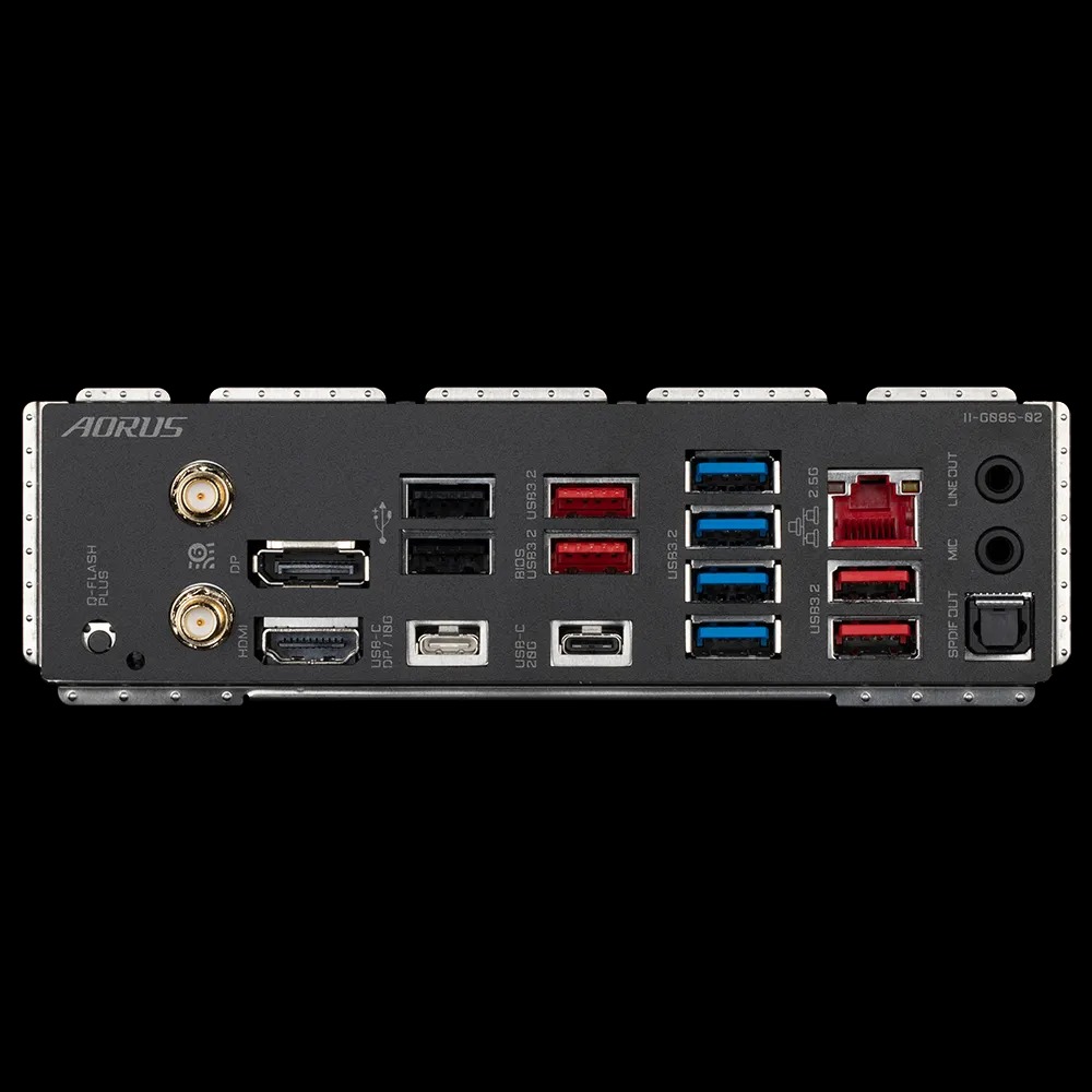 - 4 x cổng USB 3.2 Gen 1 ở mặt sau Kết nối I/O bên trong 1 x đầu nối nguồn chính ATX 24 chân 2 x đầu nối nguồn ATX 12V 8 chân 1 x đầu cắm quạt CPU 1 x đầu cắm quạt tản nhiệt nước CPU 4 x đầu cắm quạt hệ thống 4 x quạt hệ thống / đầu bơm nước làm mát 2 x đầu cắm dải LED có thể định địa chỉ 2 x đầu cắm dải LED RGB 1 x dải LED làm mát CPU / đầu cắm dải LED RGB 4 x đầu nối M.2 Socket 3 6 x đầu nối SATA 6Gb / s 1 x tiêu đề bảng điều khiển phía trước 1 x tiêu đề âm thanh bảng điều khiển phía trước 1 x đầu cắm USB Type-C , với hỗ trợ USB 3.2 Gen 2x2 2 x đầu cắm USB 3.2 Thế hệ 1 2 x đầu cắm USB 2.0 / 1.1 1 x tiêu đề phát hiện tiếng ồn 1 x đầu nối thẻ bổ trợ THB_U4 1 x tiêu đề Mô-đun nền tảng đáng tin cậy (Chỉ dành cho mô-đun GC-TPM2.0 SPI / GC-TPM2.0 SPI 2.0) 1 x nút nguồn 1 x nút đặt lại 1 x jumper đặt lại 1 x Clear CMOS jumper 2 x đầu cắm cảm biến nhiệt độ Điểm đo điện áp Kết nối bảng phía sau 1 x nút Q-Flash Plus 2 x đầu nối ăng ten SMA (2T2R) 1 x DisplayPort 1 x cổng HDMI 2.0 1 x cổng USB Type-C (DisplayPort), với hỗ trợ USB 3.2 Gen 2 1 x cổng USB Type-C , với hỗ trợ USB 3.2 Gen 2x2 4 x cổng USB 3.2 Gen 2 Type-A (màu đỏ) 4 x cổng USB 3.2 Gen 1 2 x cổng USB 2.0 / 1.1 1 x cổng RJ-45 1 x đầu nối quang S / PDIF Out 2 x giắc cắm âm thanh Điều khiển I/O Chip điều khiển iTE I / O H/W Monitoring