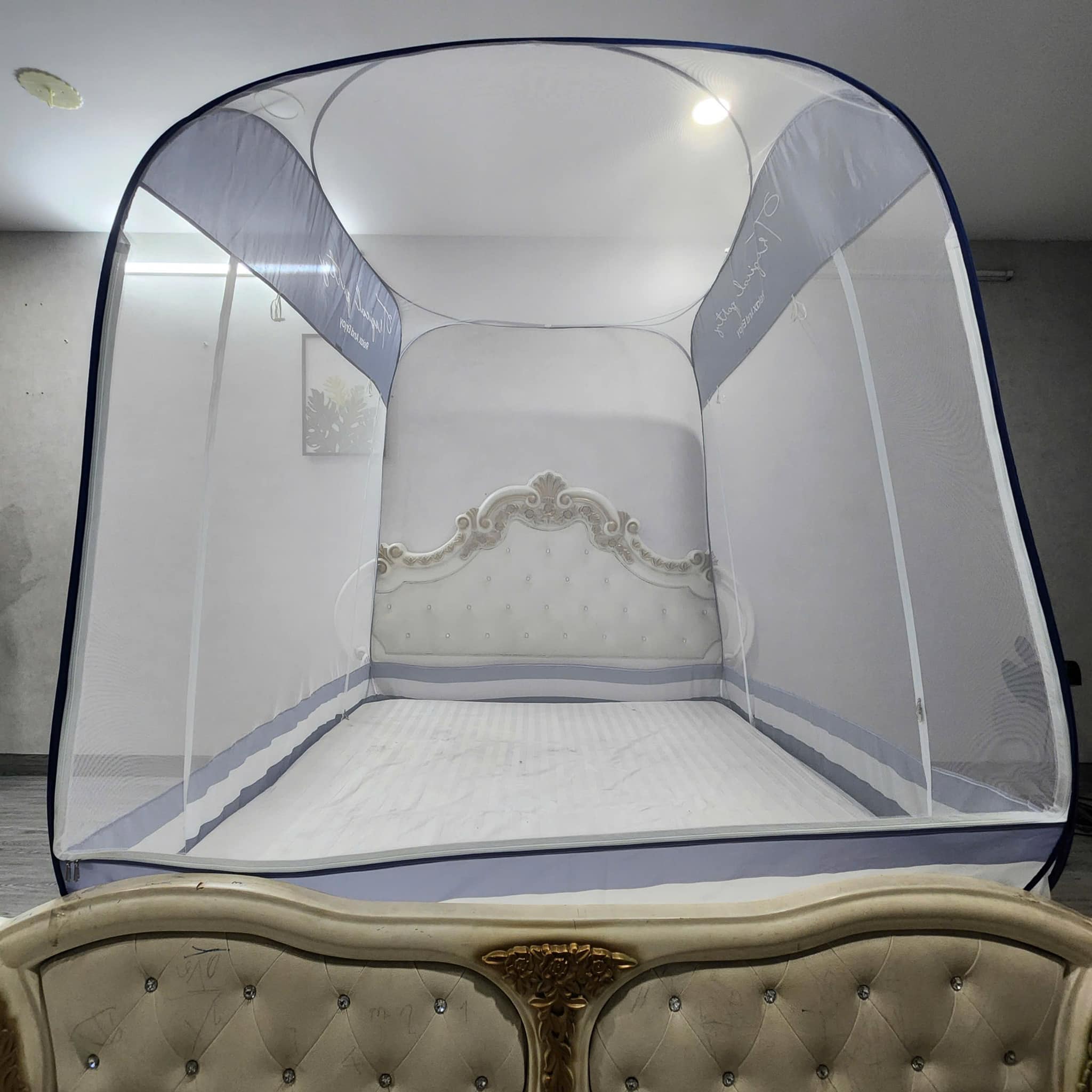 MÀN CHỤP , MÙNG CHỤP CAO CẤP MỘC MIÊN ĐỈNH CHÓP : - Dùng màn chụp đỉnh chóp cho không gian nhà nhỏ - dễ gấp , mắt lưới thưa hơn mà vẫn đảm đảm