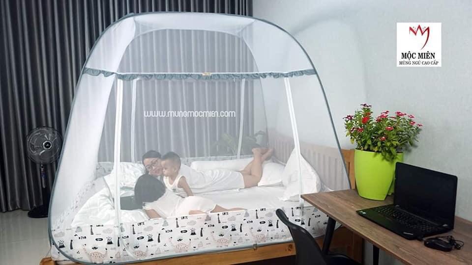 MÀN CHỤP , MÙNG CHỤP CAO CẤP MỘC MIÊN ĐỈNH CHÓP : - Dùng màn chụp đỉnh chóp cho không gian nhà nhỏ - dễ gấp , mắt lưới thưa hơn mà vẫn đảm đảm
