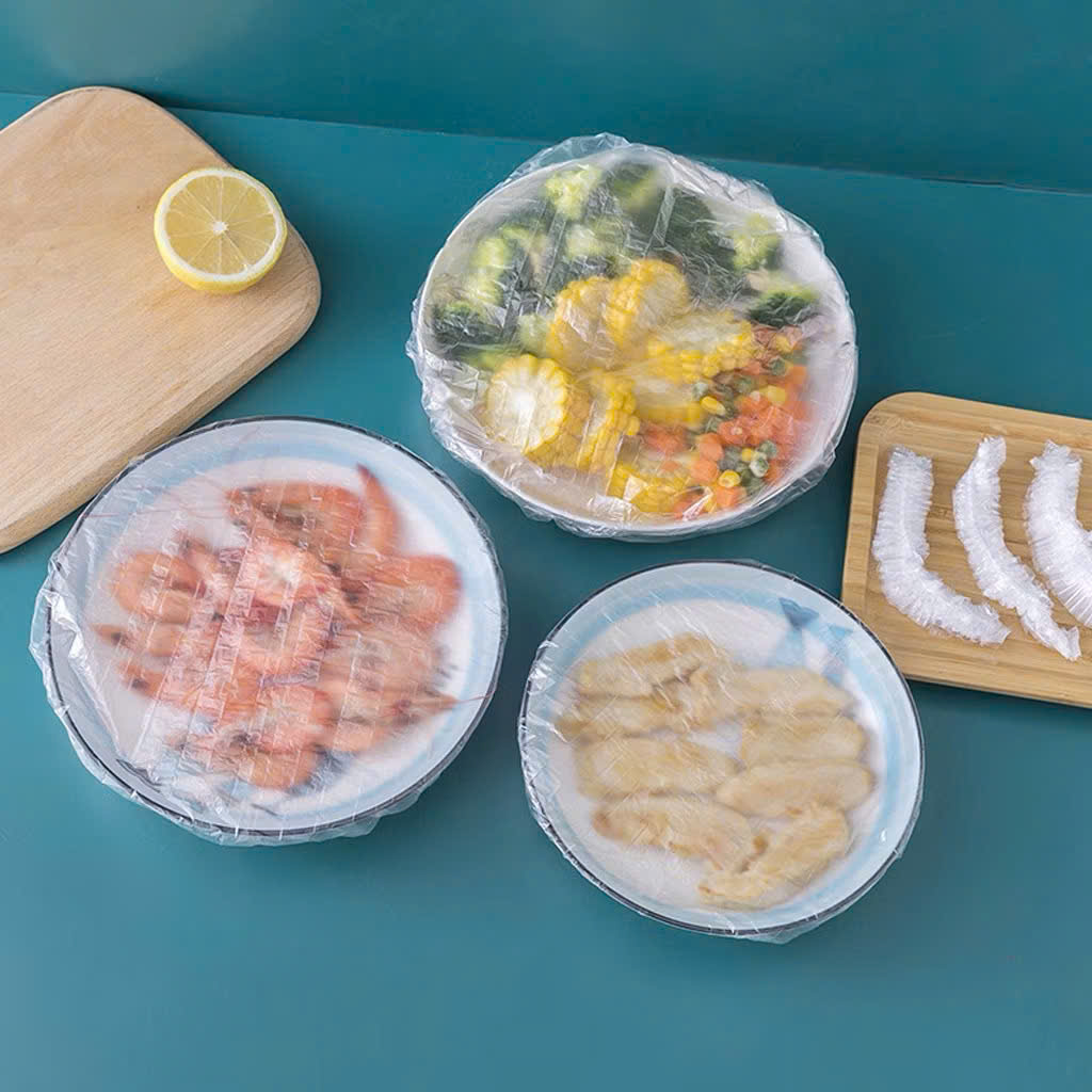 Set 100 Cái Màng Bọc Thực Phẩm Có Chun Co Giãn Tái Sử Dụng Được Nhiều Lần Đựng Trong Túi Gấu Dây Rút