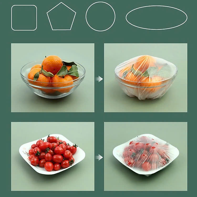 -Set 2 túi (200cái ) màng bọc thực phẩm bo chun co giãn thông minh , giúp bảo quản thực phẩm tránh nhiễm khuẩn , bụi bẩn , phù hợp với mọi hình dạng kích