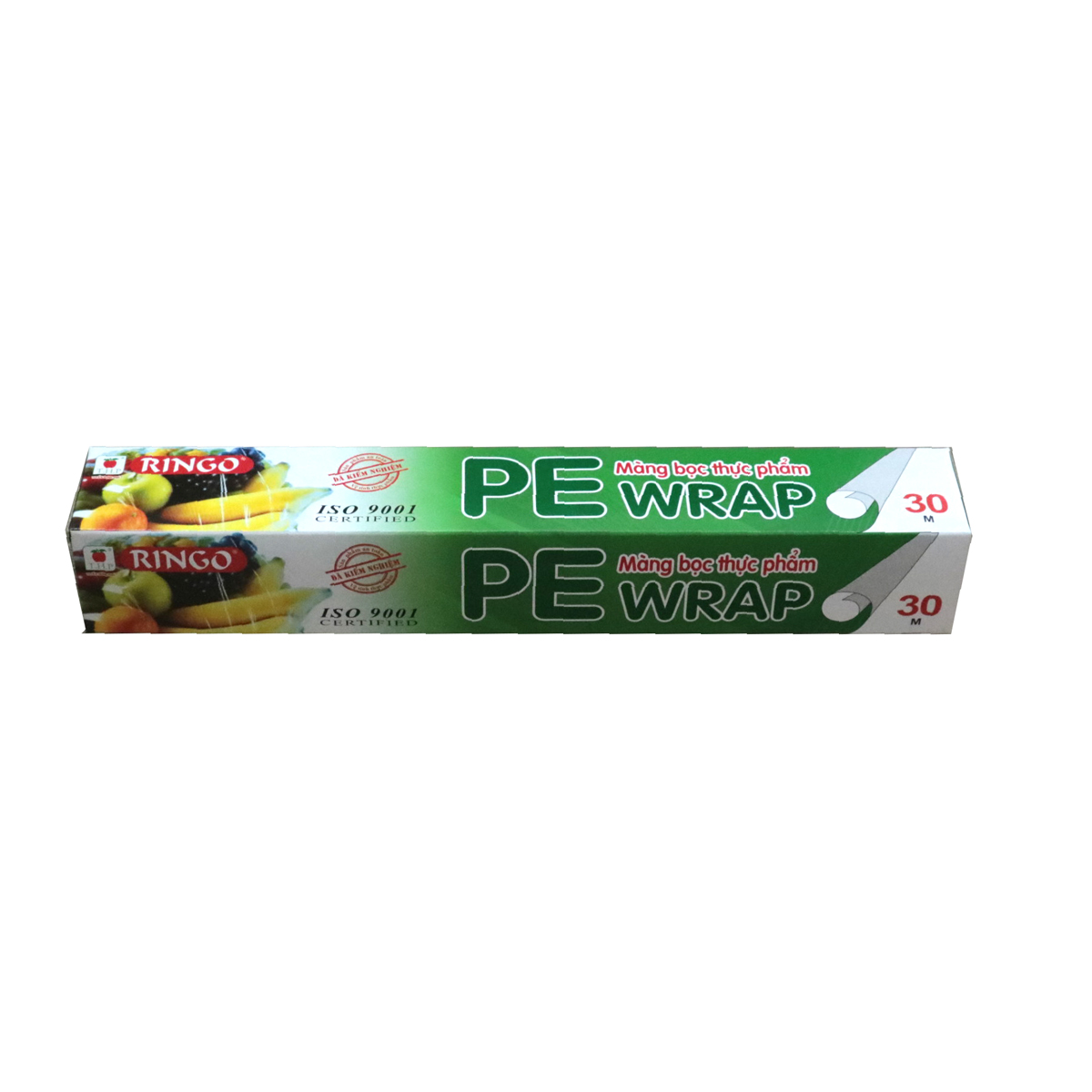 - Màng Bọc Thực Phẩm PE Ringo 150 (30cm x 150m) được sản xuất từ chất liệu nhựa Polyethylene (PE) thông qua quy trình kiểm nghiệm chất lượng 6 tháng / 1 lần nhằm đảm bảo