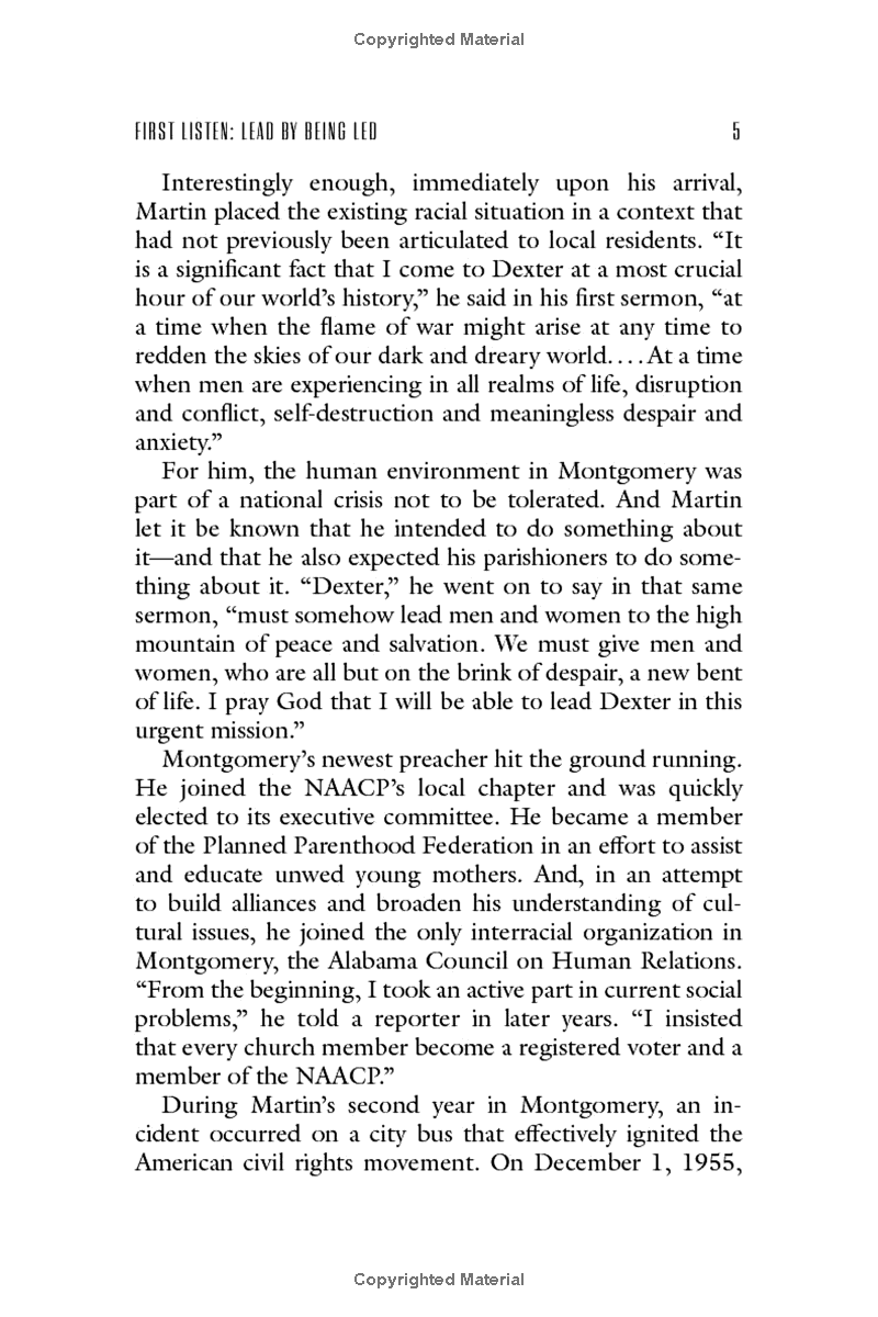 And in today's world, his wisdom and teachings are needed more than ever. Martin Luther King Jr., On Leadership chronicles the actions of Martin Luther King Jr.'s life and identifies the key leadership skills he displayed such as: