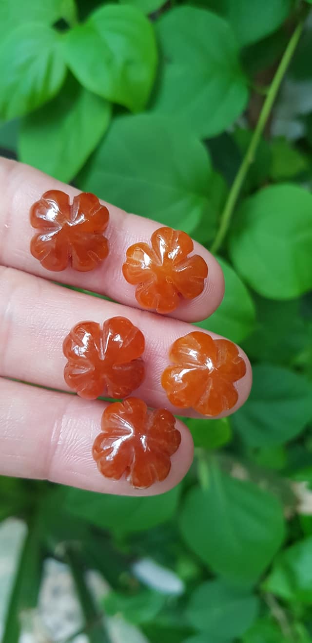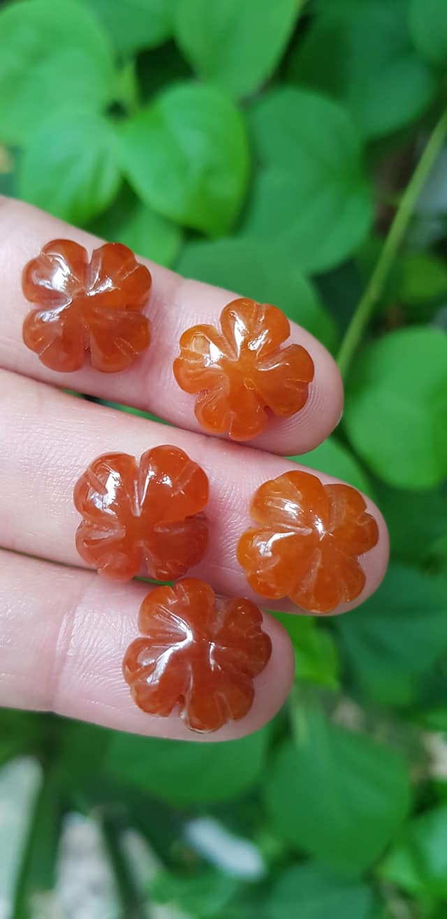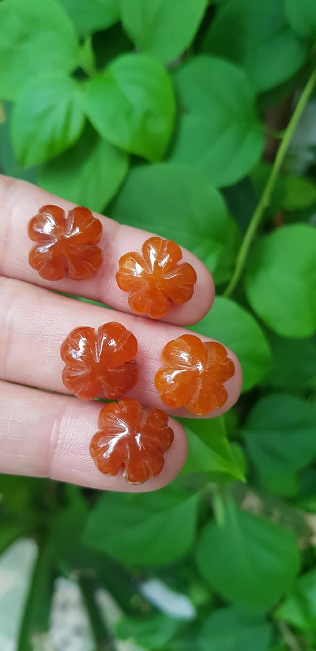 Hoa cỏ 4 lá màu cam đậm phối vòng tay,làm mặt nhẫn đá cẩm thạch size hạt 15mm x dầy 6mm
