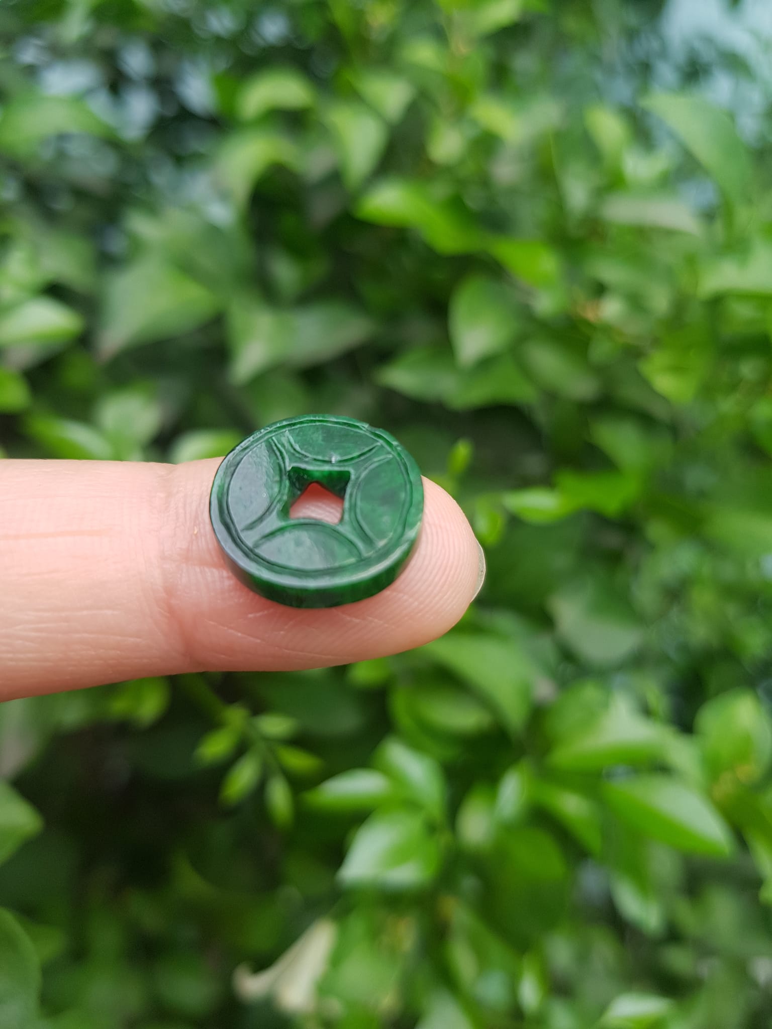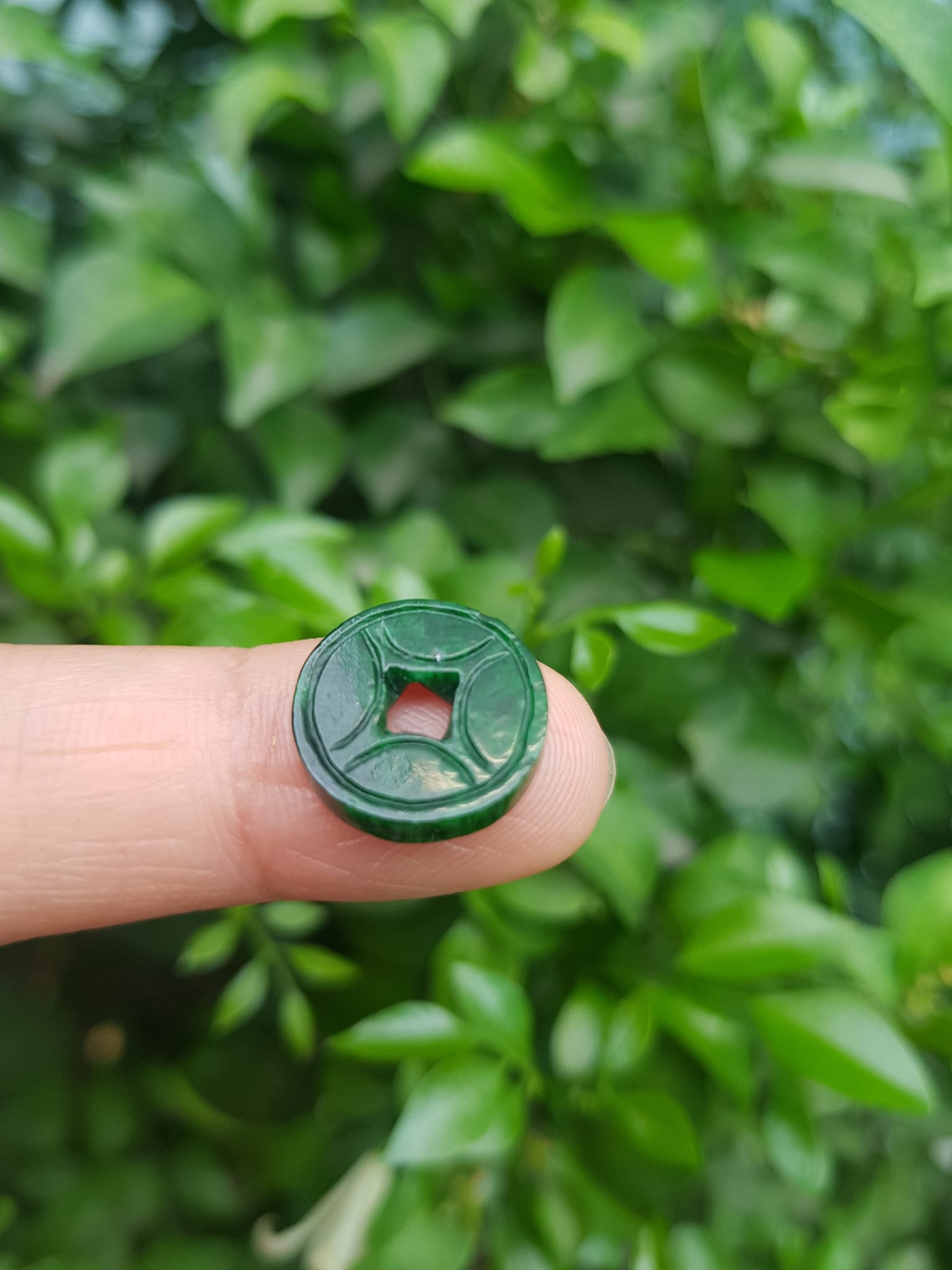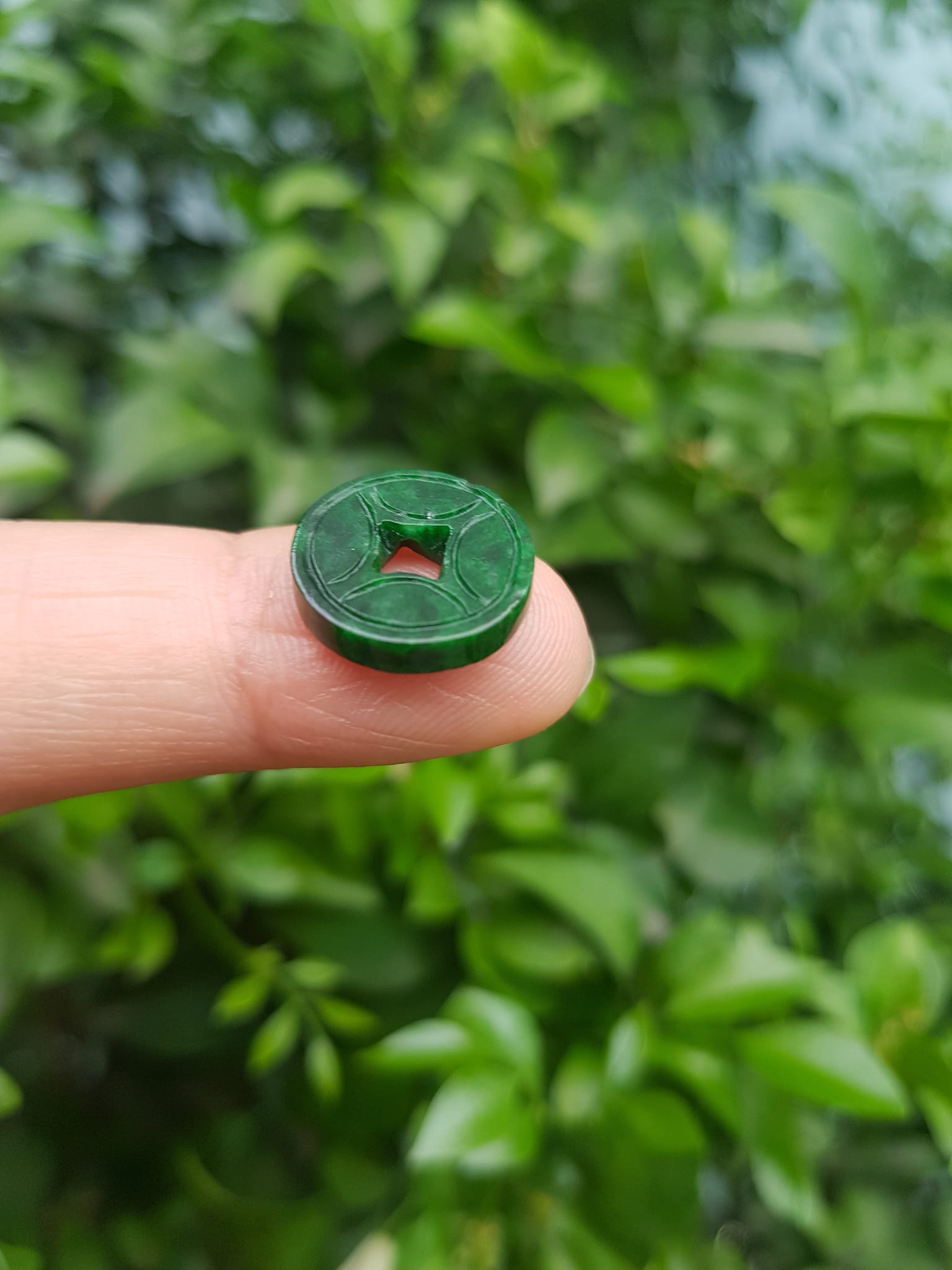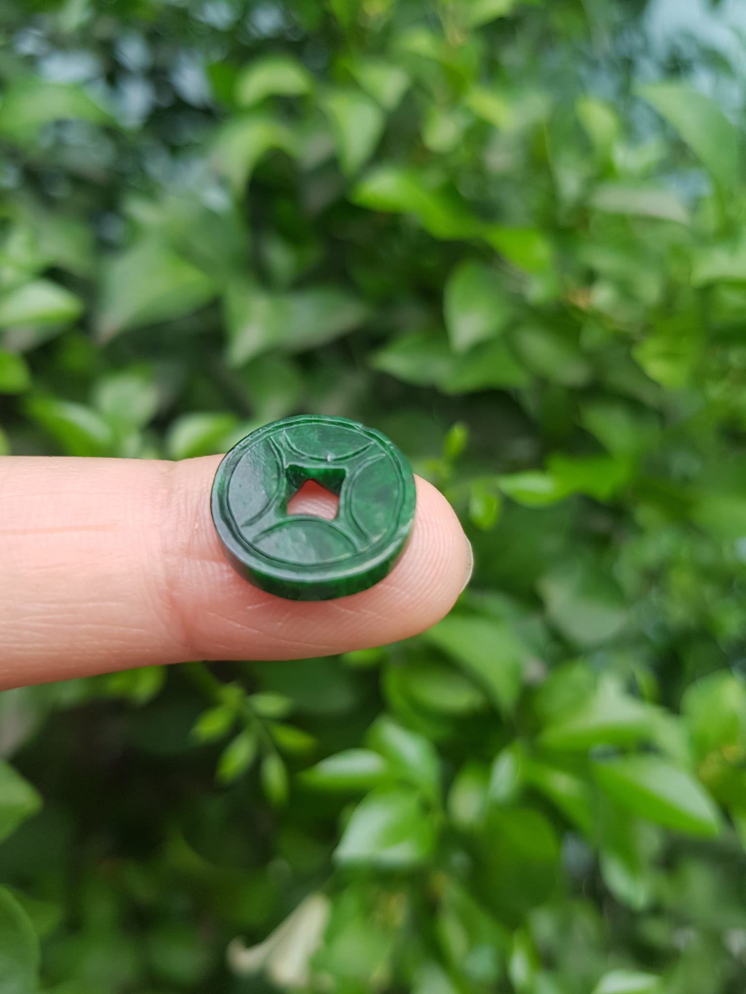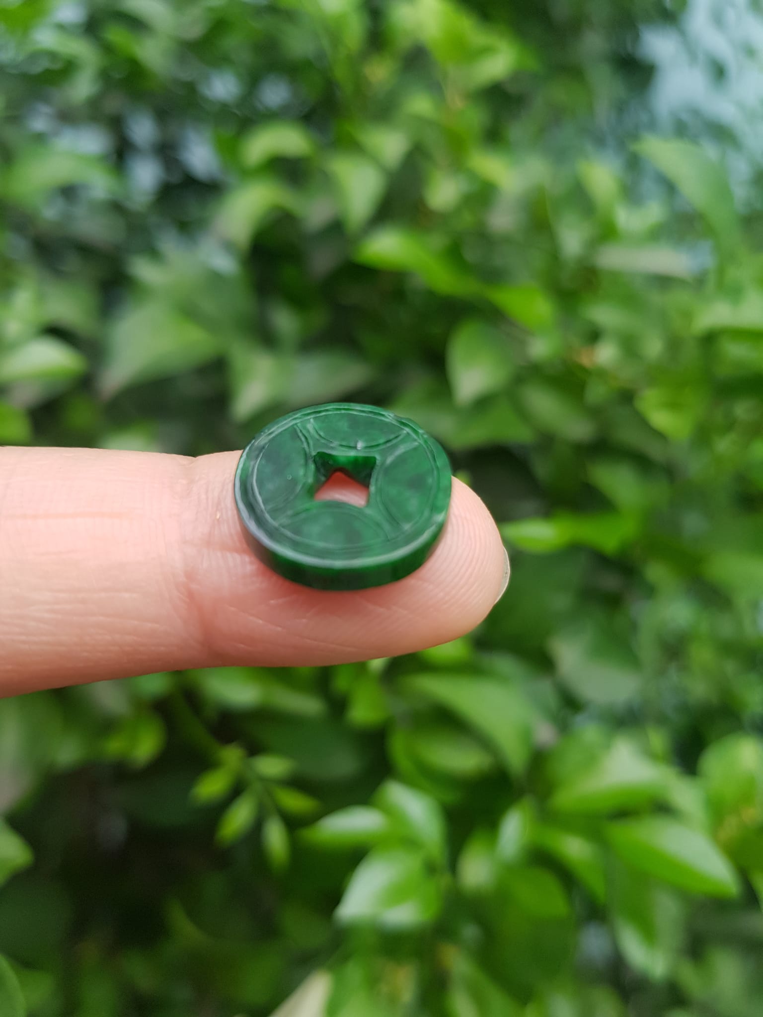 ✨Mặt Dây Chuyền Mặt Nhẫn Đồng Tiền Mới màu Xanh Đậm Đẹp Đá Cẩm thạch xanh tự nhiên Size nhỏ vừa đk 13,5mm x dầy 3mm Nữ bọc vàng lên đeo đẹp lắm rất ý nghĩa đồng tiền may mắn tài lộc ạ