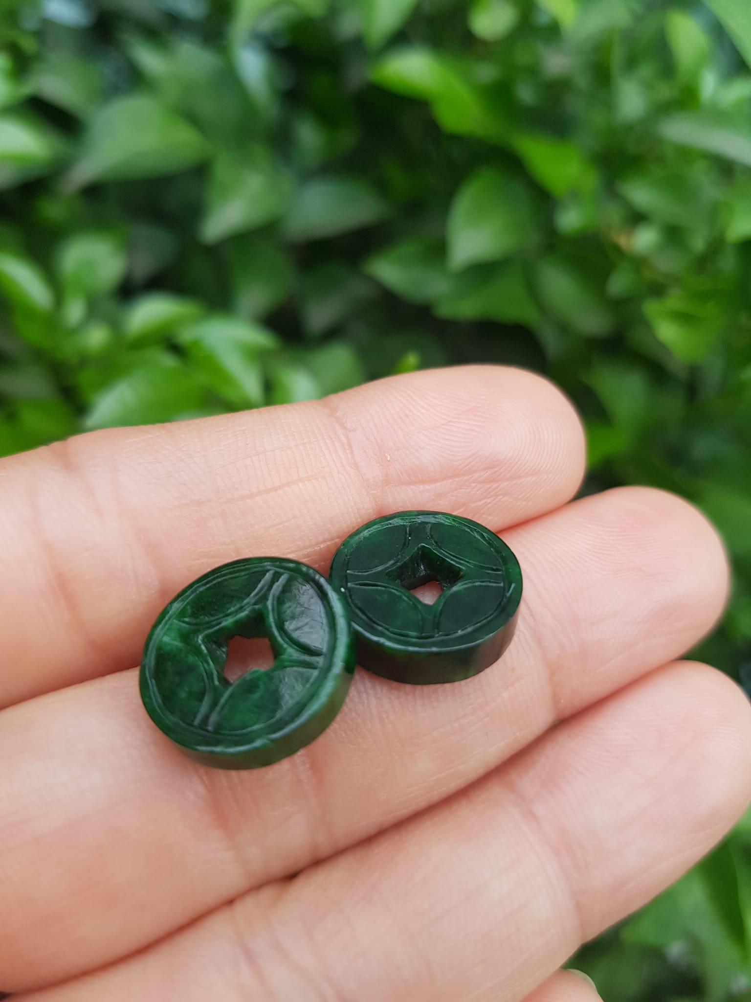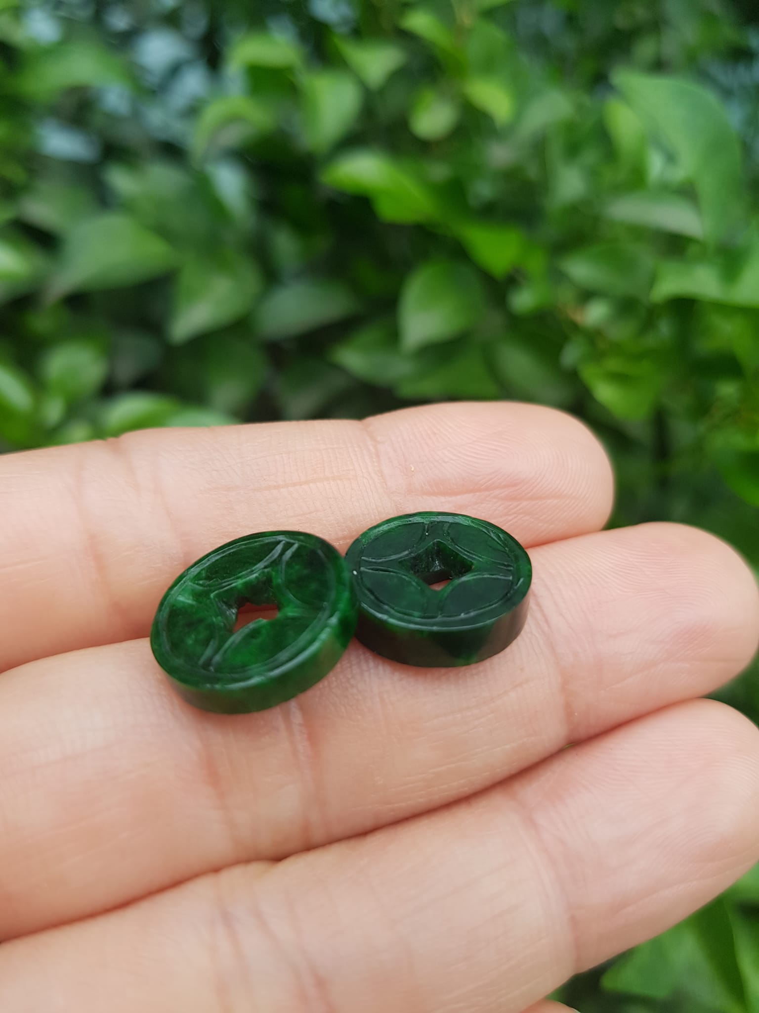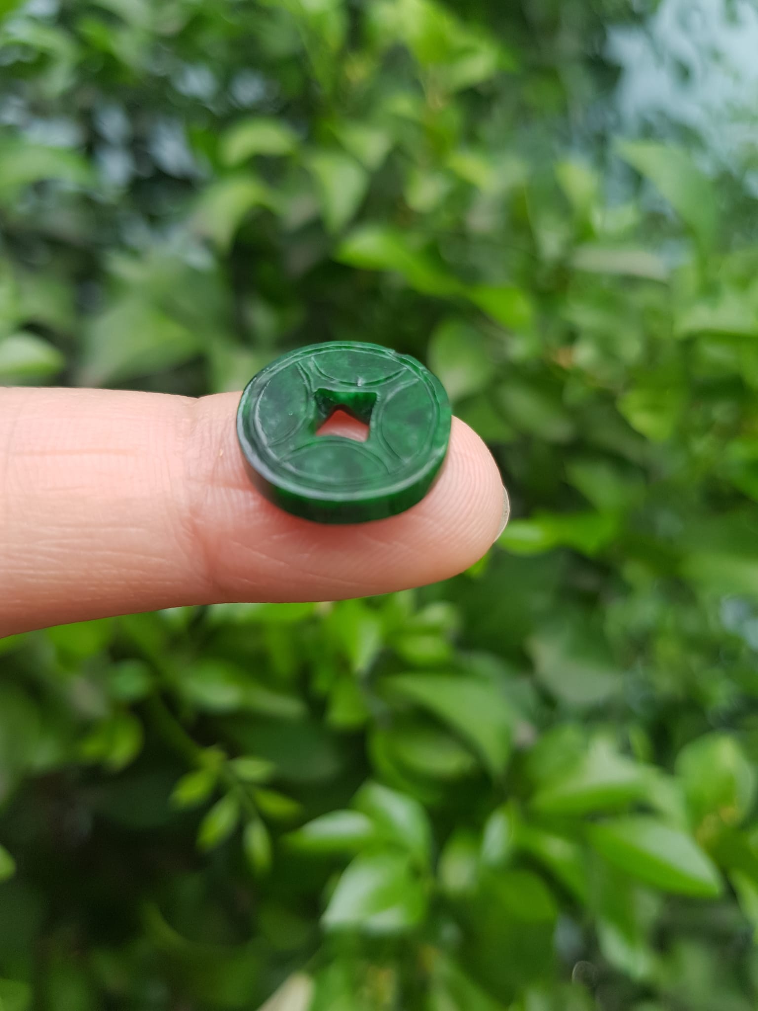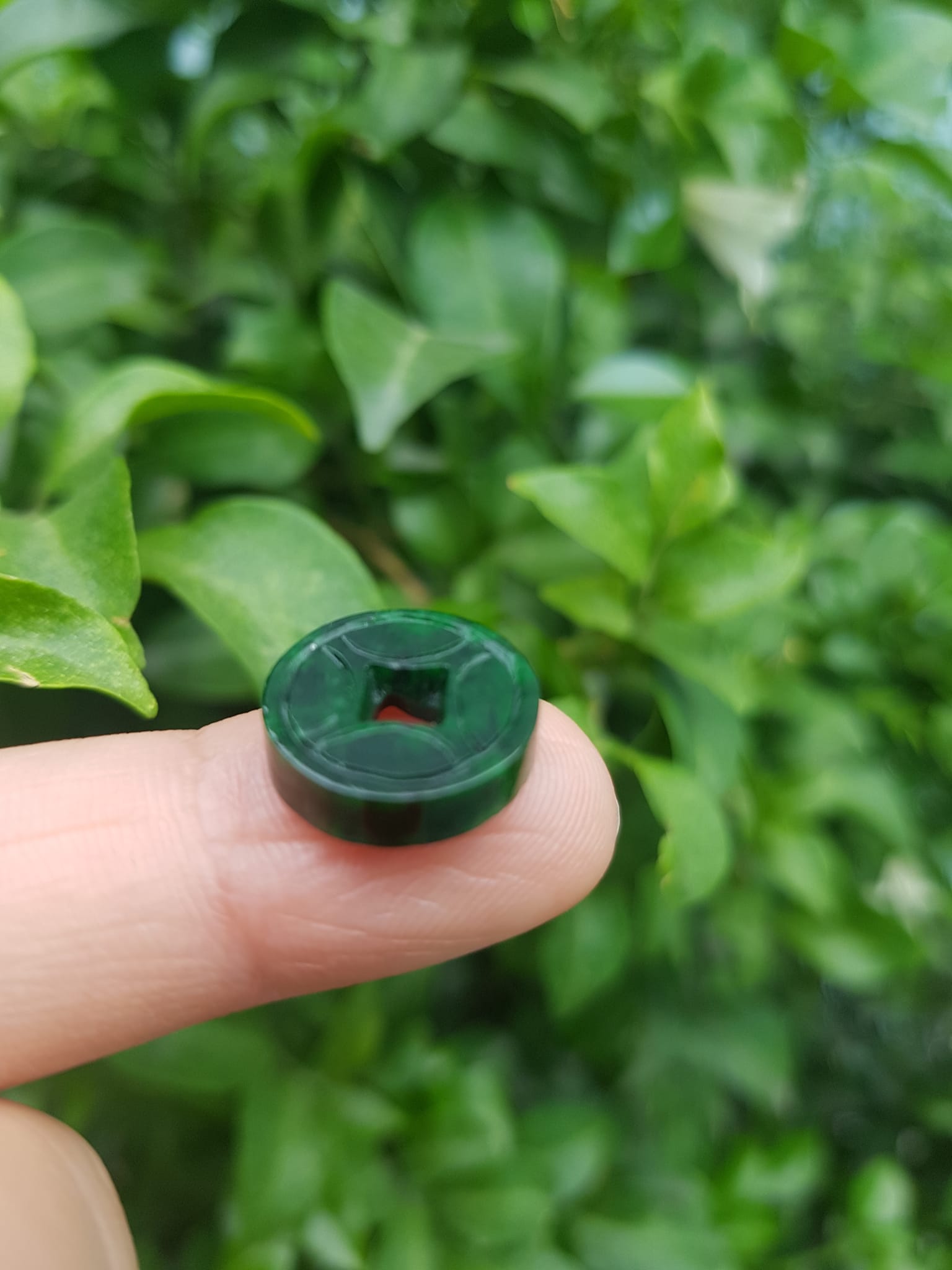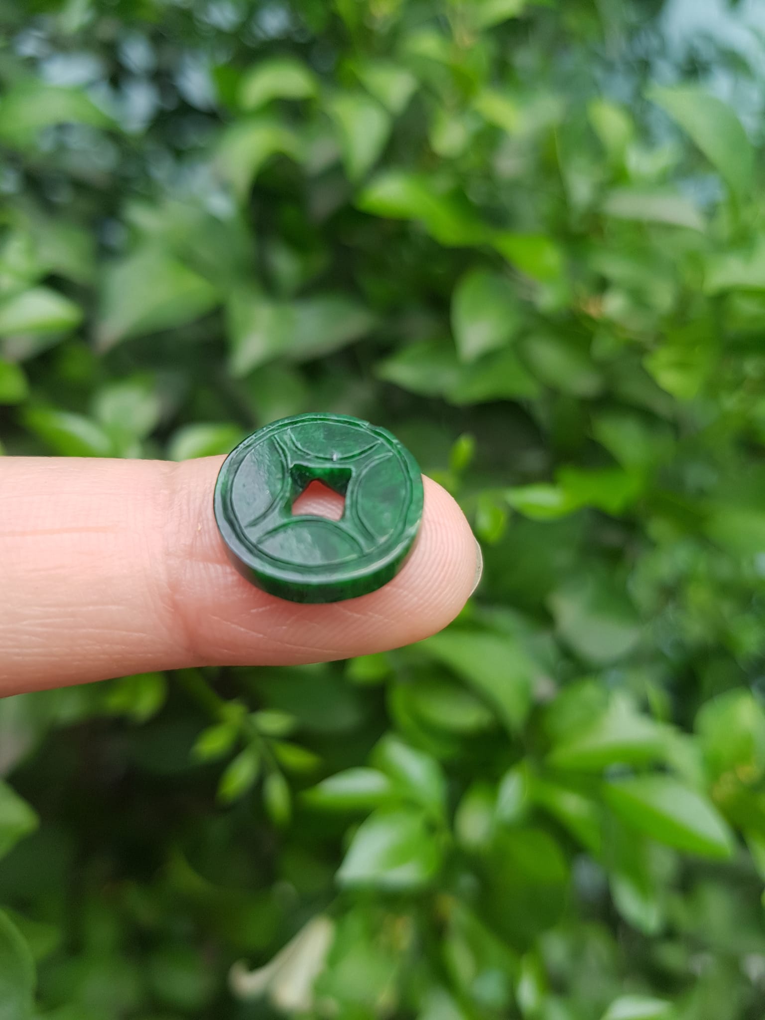 ✨Mặt Dây Chuyền Mặt Nhẫn Đồng Tiền Mới màu Xanh Đậm Đẹp Đá Cẩm thạch xanh tự nhiên Size nhỏ vừa đk 13,5mm x dầy 3mm Nữ bọc vàng lên đeo đẹp lắm rất ý nghĩa đồng tiền may mắn tài lộc ạ