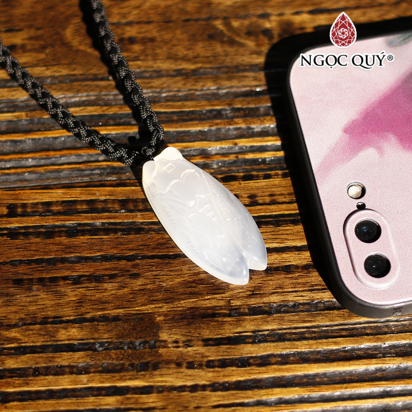 ✨Mặt dây chuyền ngọc thiền con ve đá mã não trắng 5x2.2cm mệnh thủy, kim - Ngọc Quý Gemstones