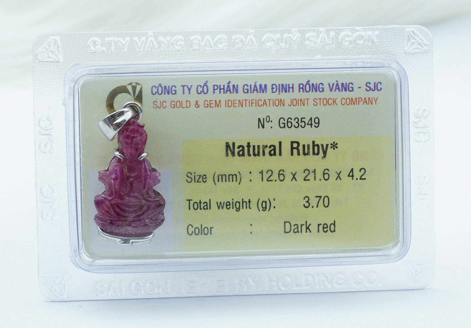 Chất liệu đá Ruby tự nhiên, đã kiểm định bởi SJC.