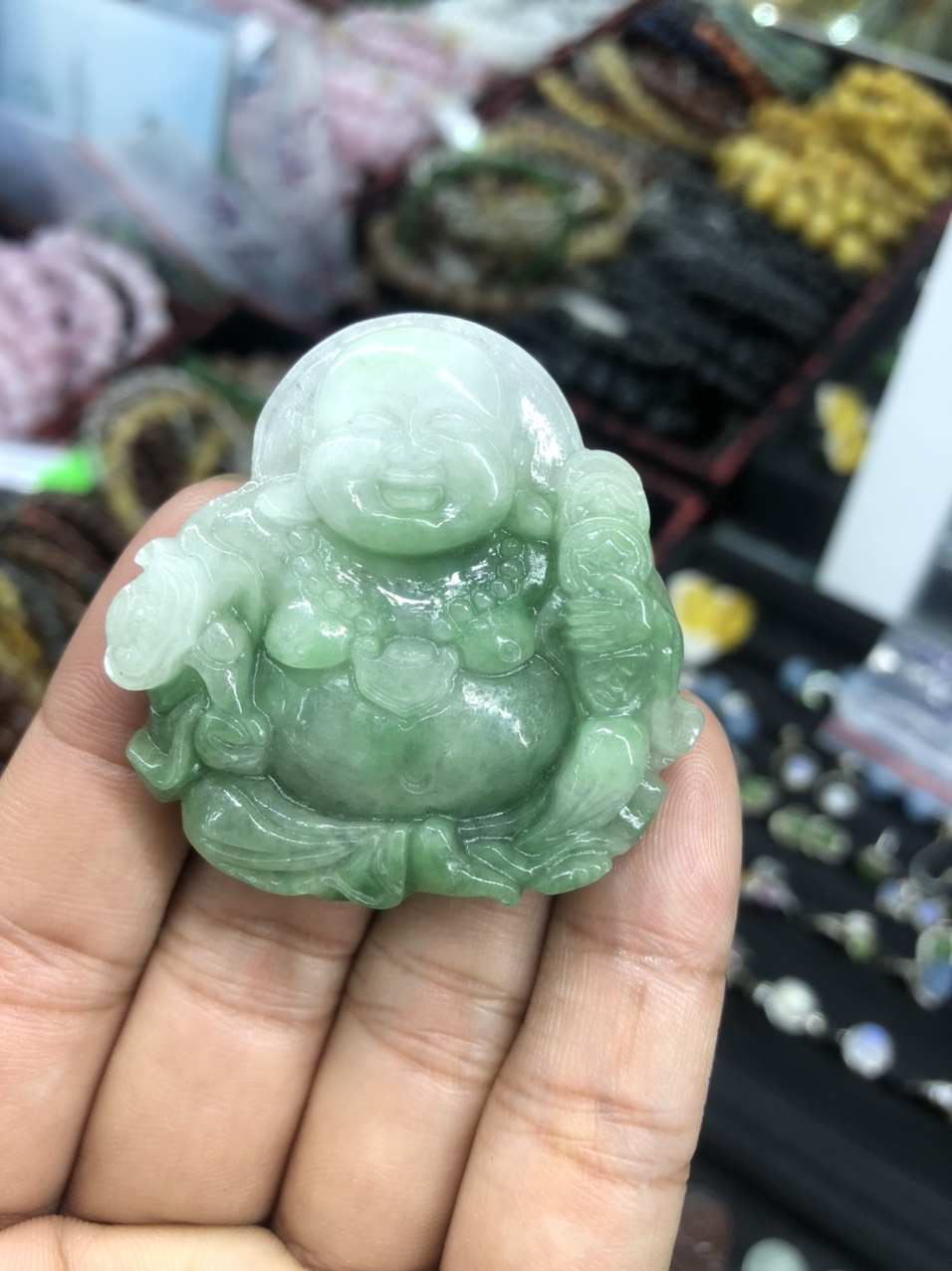 Mặt dây chuyền phật di lặc ngọc cẩm thạch tự nhiên