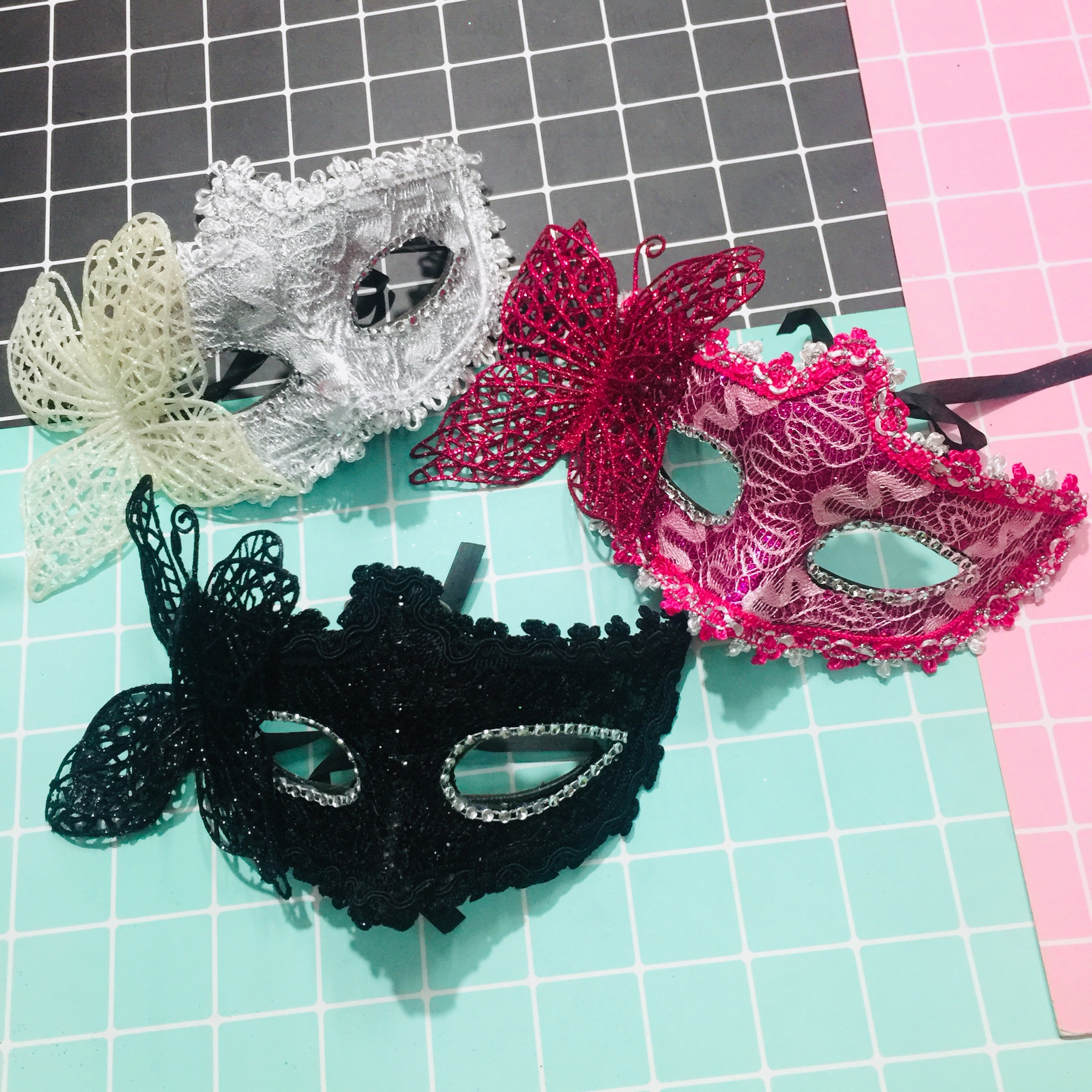 ✨Mặt nạ hoá trang ren đính hoa bướm nhiều màu