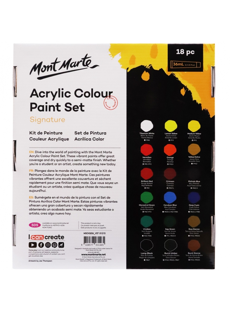 Văn phòng phẩm Nam Sơn là đại lý ủy quyền của thương hiệu Mont Marte Thông tin sản phẩm: Màu Acrylic Paint Mont Marte - Thương hiệu: Mont Marte - Dung tích: 36ml - Màu