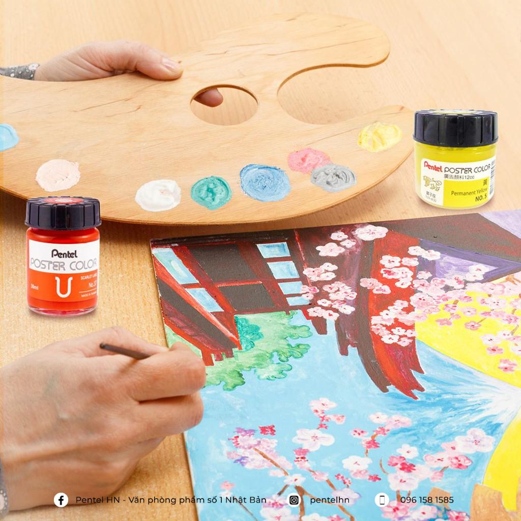 Mua tại TiktokPentel Vietnam - Văn phòng phẩm số 1 Nhật Bản - Chất lượng hàng đầu Thế Giới Thông tin sản phẩm Bộ 12 Màu Bột Poster Pentel WPU2-12 | Màu Vẽ Bền, Lâu Phai, Không Độc Hại - Màu Poster Pentel Là dạng màu bột pha nước Màu Poster Pentel có màu sắc tươi sáng, đa dạng và không độc hại. - Màu Poster Pentel có khả năng chồng màu lên nhau. - Màu Poster Pentel được bảo quản trong lọ nhựa cứng chắc chắn giúp màu được bảo quản tuyệt đối khỏi thời tiết. - Chất màu Poster Pentel đặc giúp sử dụng vô cùng tiết kiệm -Dung tích: 30ml x12 màu -Bộ 12 màu (Lọ thủy tinh) gồm: Yellow Green 17, Viridian 18, Sky Blue 72, Cobalt Blue 23, Cobalt Violet 65, Black 28, White 29, Yellow 12, Yellow Deep 62, Orange 3, Red 11, Brown 8 Ứng dụng của màu Poster