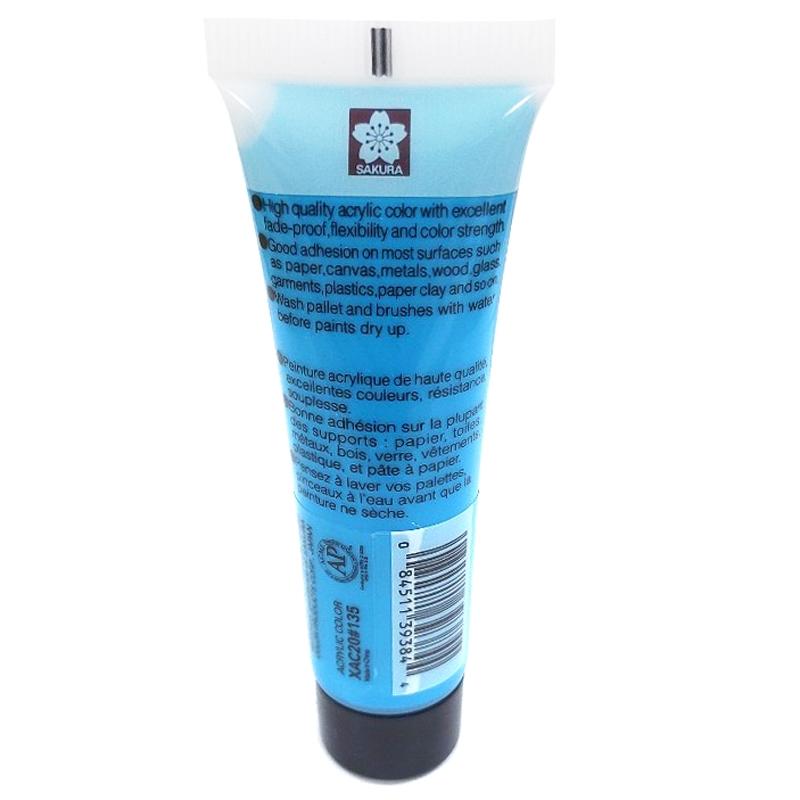 Màu Vẽ Acrylic Sakura 20ml XAC20#135 - Turquoise Blue Sản phẩm là loại màu chất lượng cao dùng để vẽ lên nhiều bề mặt khác nhau như: giấy, vải bố, kim loại, gỗ, thủy tinh,