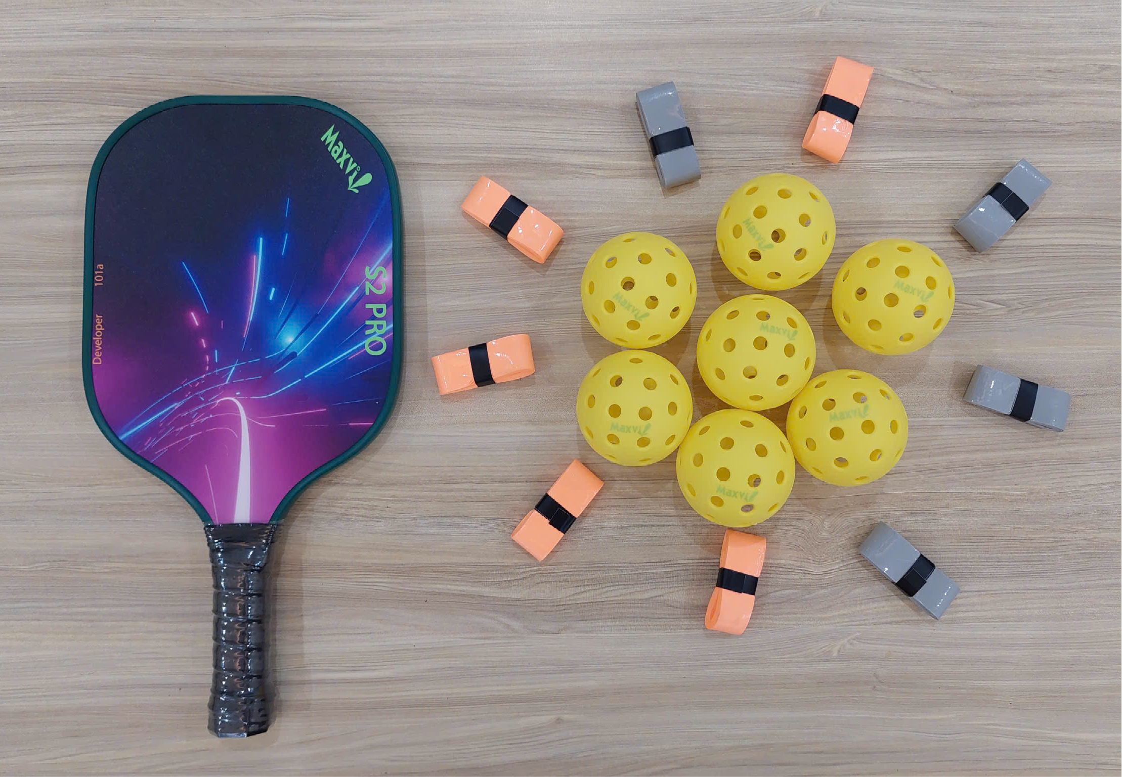 Alex lựa chọn sân Pickleball có mái che để không phụ thuộc thời tiết, ngày ra sân, thầy dạy hướng dẫn Alex cách cầm vợt pickleball bạn mới thấy lựa chọn vợt S2 PRO là quyết định đúng đắn. Nhà bán hàng khuyến mại Alex quấn cán vợt PU của MAXVI, bạn ấy biết cách quấn cán vợt pickleball y hệt như tennis trước đây bạn đã từ chơi.