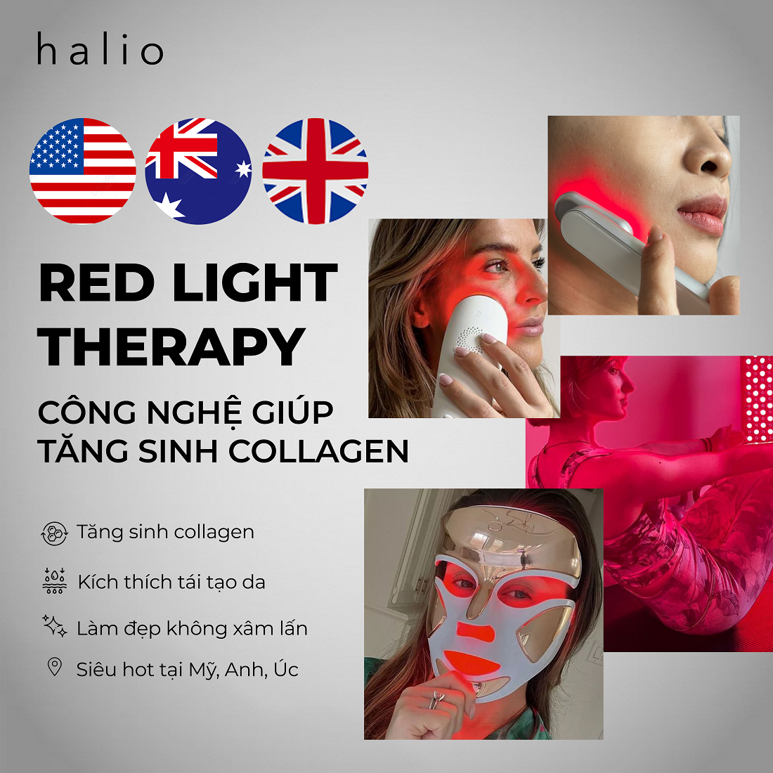 💓 Máy Ánh Sáng Đỏ Giúp Trẻ Hoá Da Halio Red Light Therapy Device 3 in 1