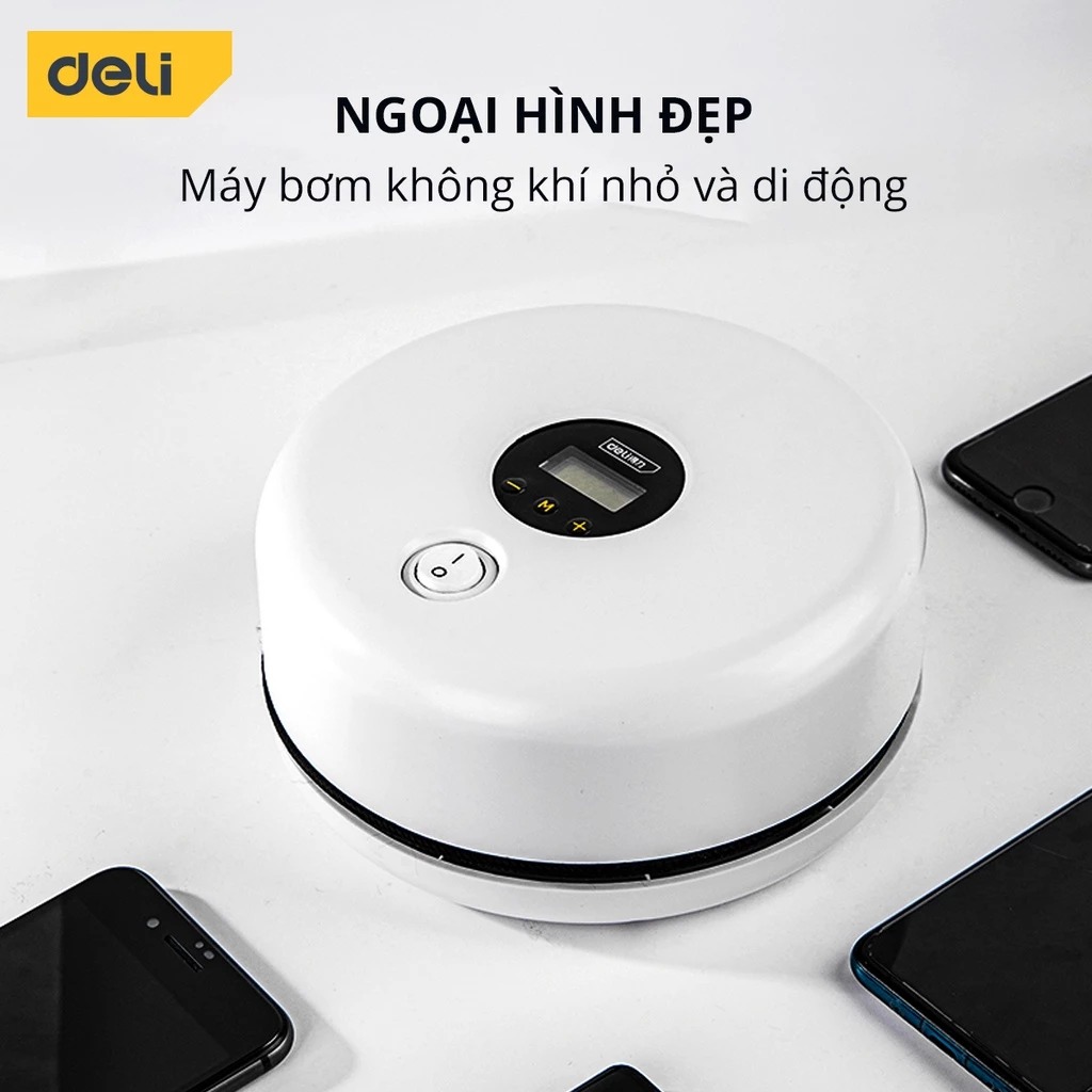 Máy bơm hơi không dây Deli DL880190, bơm ô tô, xe đạp, xe máy