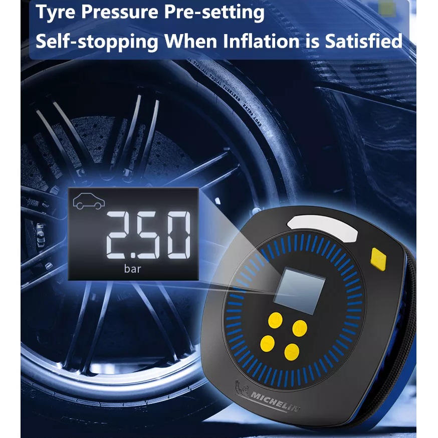 Máy bơm và xả lốp xe đa năng tự ngắt 12v Michelin M2201 sở hữu một tính năng đáng giá đó là thiết lập mức áp suất lốp mong muốn và máy sẽ tự ngắt khi đã bơm đạt mức. Công đoạn "hẹn giờ" áp suất này cũng rất đơn giản. Với công nghệ cài đặt thông số hơi tự động, giúp bạn yên tâm hơn mỗi khi bơm.