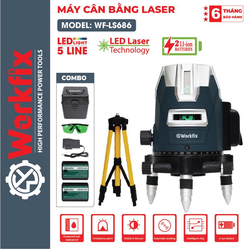 [Xoay 360 Độ] Máy Cân Bằng Laser 5 Tia Xanh Workfix WF-LS686 - 2 Pin 4800mAh - Đèn Led Siêu Sáng - Bảo Hành Chính Hãg 6 Tháng