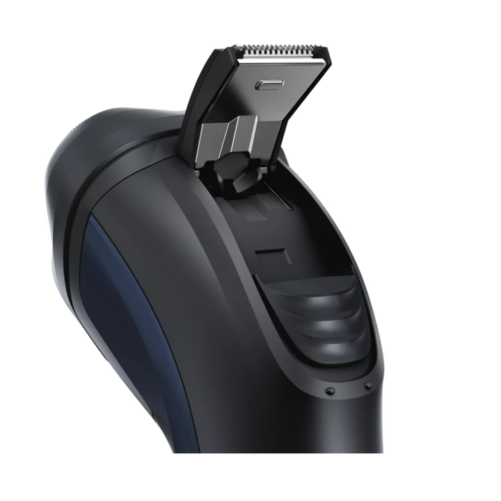 - Tay cầm máy cạo râu có vị trí nắm tiện dụng với vỏ chống trượt, bảo đảm điều khiển tốt để cạo chính xác hơn. Đầu tỉa: hoàn hảo cho tóc mai và ria mép.