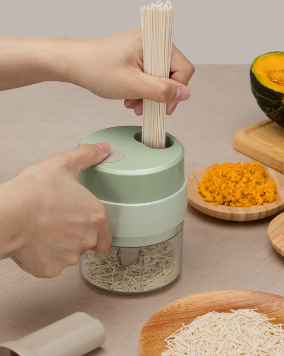 Cắt, xay nhuyễn đối với các loại hành tỏi, ớt , rau, thảo mộc, hành tây, các loại hạt...bằng tay chỉ với thao tác kéo dây cắt cực dễ và tiện Các mẹ làm đồ