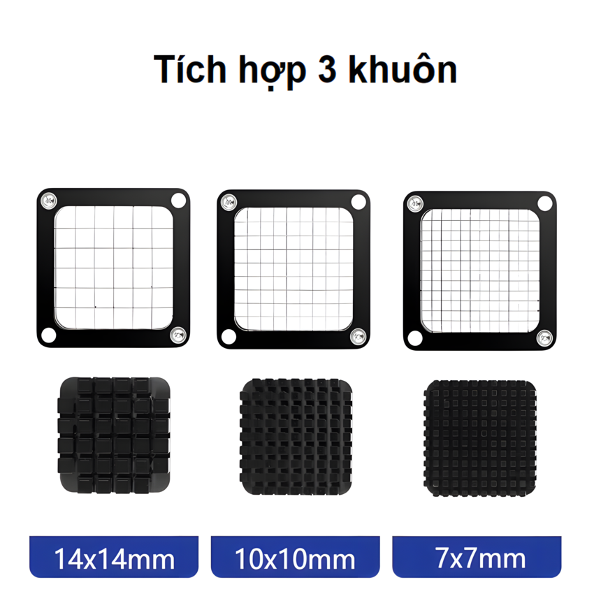 - Để có cách làm khoai chiên giòn đều chuẩn vị thì khâu chế biến cắt sợi chiếm vai trò khá quan trọng, vì phải cắt có độ dày, mỏng đồng đều nhau thì khi chiên, xào, lắc các món ăn từ khoai tây, khoai lang, hay mứt ô, mai của cà rốt, củ cải, mới đạt độ chuẩn vị, ngon giòn nhất. Vì vậy một chiếc máy cắt sợi rau củ là thiết bị công nghệ, giải pháp hoàn hảo cho các quán ăn vặt, quán ăn vỉa hè, KFC, quán cafe, nhà hàng, khách sạn hay các hộ kinh doanh nhỏ lẻ. - Máy cắt khoai lang chiên sử dụng động cơ có công suất 550W, nguồn điện 24V vận hành ổn định, với 2 công tắc điều khiến tiến và lùi. Nút điều khiển được bổ trí ngay trên thân máy giúp người dùng linh hoạt Thiết kế nhỏ gọn, chất liệu inox cao cấp an toàn, sạch sẽ