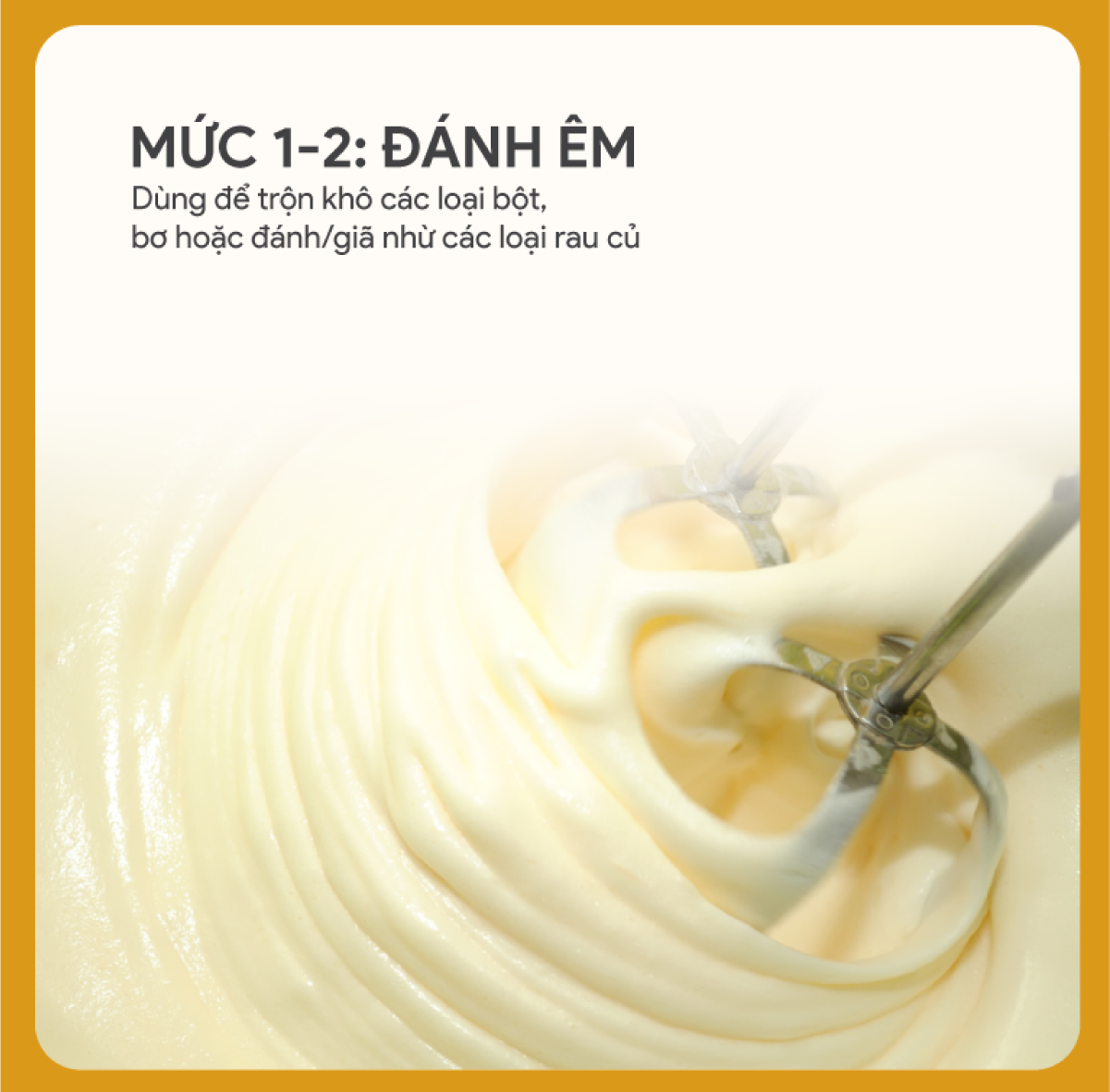 - Phụ kiện: 2 bộ dụng cụ chuyên biệt gồm các thanh đánh trứng và các thanh trộn bột bằng thép không gỉ cao cấp, bền bỉ.