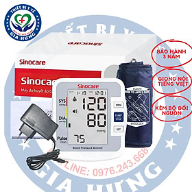 Máy đo huyết áp bắp tay sản xuất theo công nghệ tiên tiến của Đức Tính năng nhắc nhở loạn nhịp tim Bộ nhớ 90 bộ lưu trữ (2 người) Màn hình siêu lớn đo thông minh Cảnh báo huyết áp cao Có giọng nói Tiếng Việt Bảo hành 3 năm 1 đổi 1 đối với máy ( Bộ đổi nguồn Adapter không được bảo hành ) Tặng bộ đổi nguồn ( Adapter ) + 4 viên pin AA Thương hiệu Sinocare nổi tiếng với các dòng máy đo sức khỏe đang làm mưa làm gió trên thị trường với mẫu máy đo đường huyết Sinocare Safe Accu giá rẻ phổ thông mà chất lượng và độ chính xác cao.   Không dừng lại ở đó Sinocare còn có rất nhiều mặt hàng thiết bị sức khỏe khác được hãng chăm chút kĩ lưỡng, thừa hưởng dây chuyền công nghệ cao đến từ Đức, Sinocare không ngừng mở rộng quy mô trên toàn cầu về các mặt hàng giá phổ thông bất cứ ai cũng có thể mua được dễ dàng.