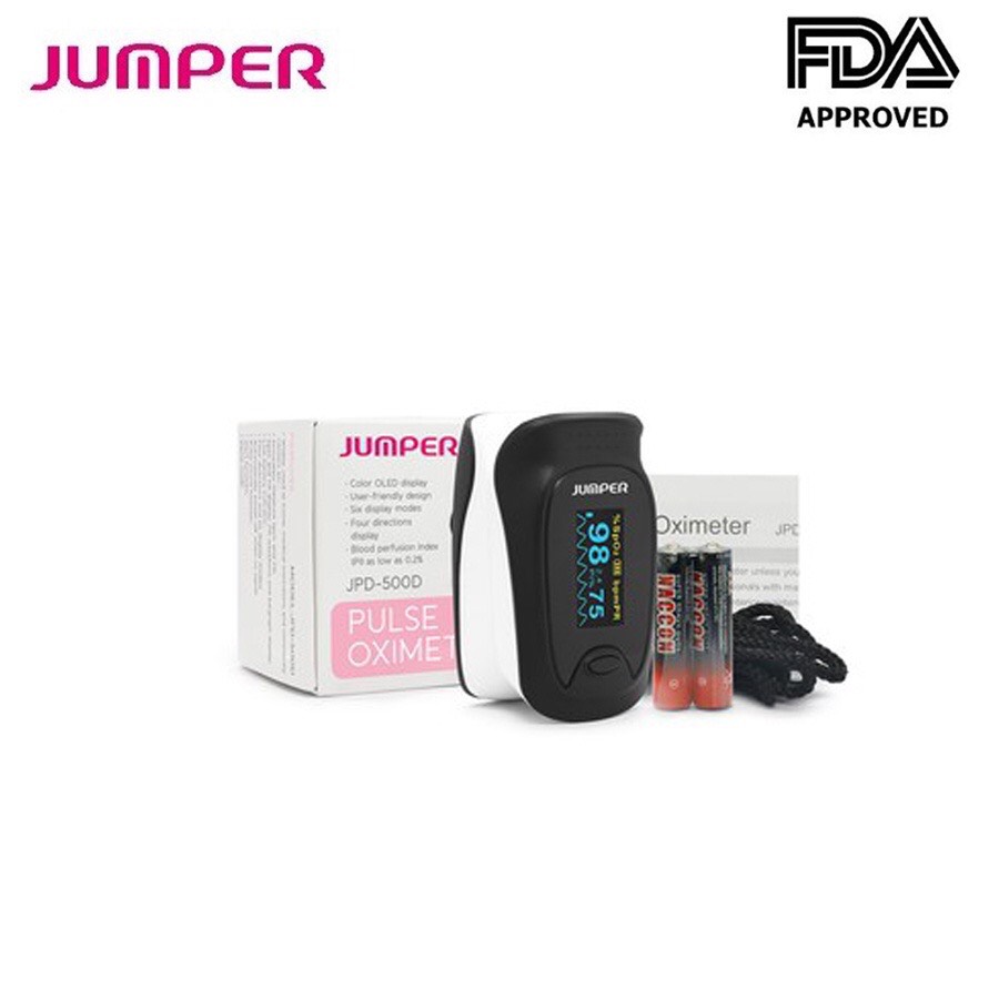 Máy đo nồng độ oxy trong máu Jumper JPD-500D là thiết bị y tế dùng để theo dõi độ bão hòa của oxy trong máu kết hợp với nhịp tim bằng phương pháp cảm biến quang học thông qua đầu ngón tay với độ chính xác cao.