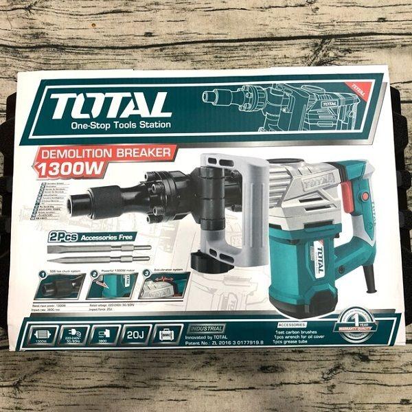 Máy đục bê tông TOTAL TH213006 công suất 1300W, tốc độ đập 3800 bpm, lực đập 20J, kèm 2 mũi đục 17mm