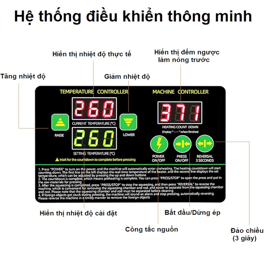 - Sản phẩm sử dụng động cơ không chổi than, tăng độ bền gấp 3 lần so với các loại thường khác có dùng chổi than. - Máy có thể sử dụng 2 chế độ ép NÓNG và LẠNH