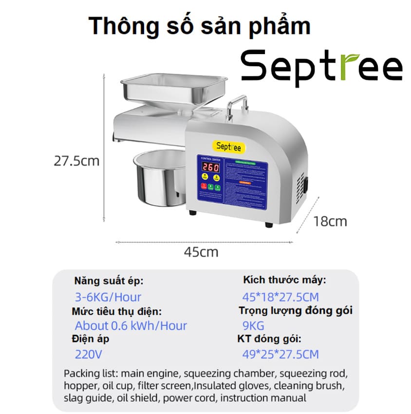 Máy ép dầu ăn thực vật, dùng trong gia đình Thương hiệu cao cấp Septree X6