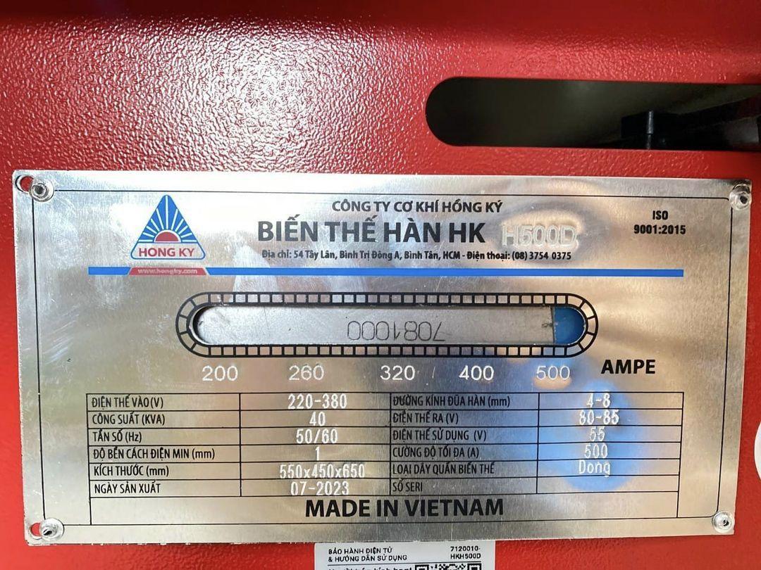 HK-H500D thuộc dòng máy hàn hồ quang lõi đồng điện thế 220V và 380V.
