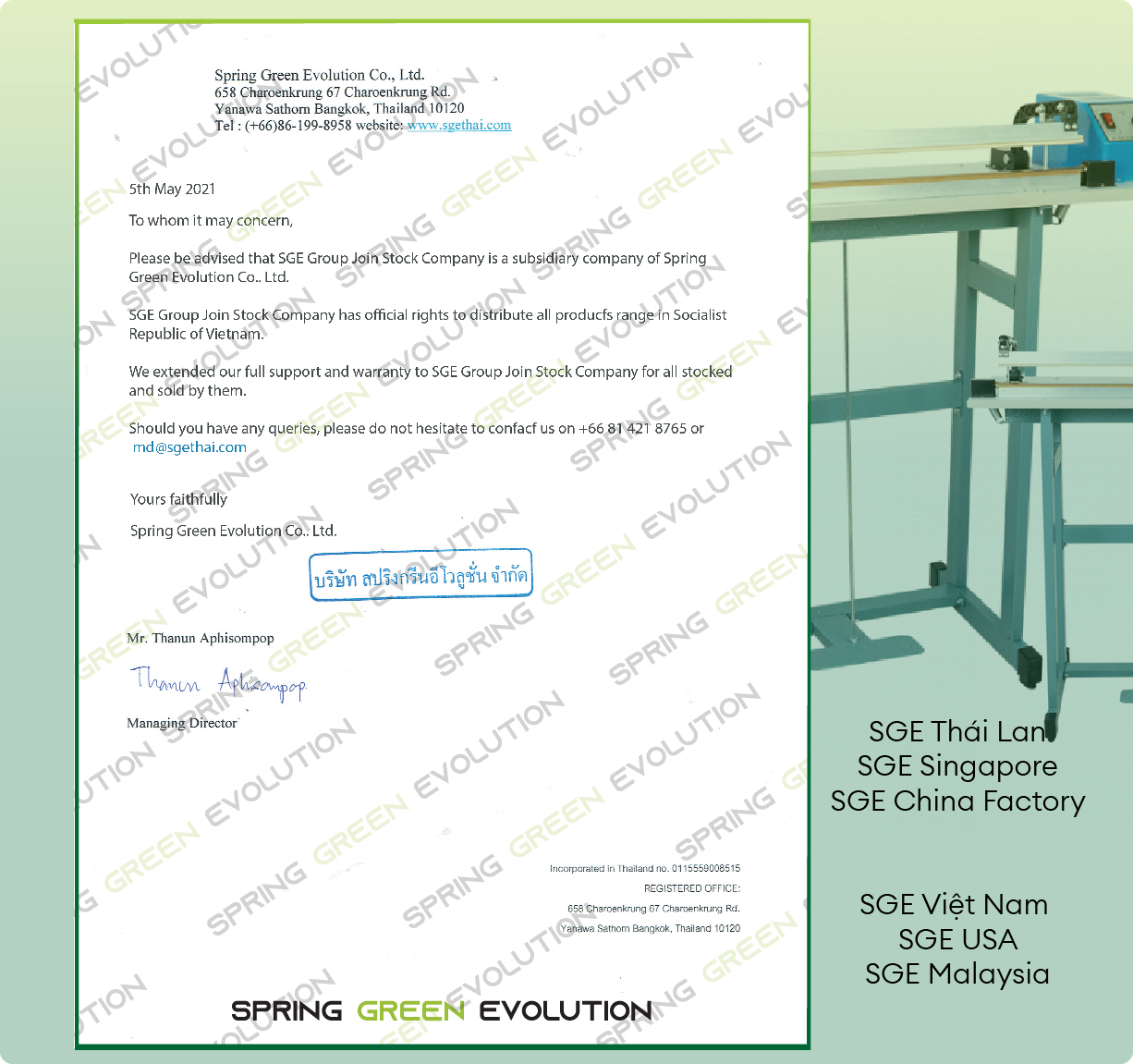 - Có thể hoạt động liên tục trong thời gian 3-4 tiếng (nên để máy nghỉ để hạ nhiệt độ dải hàn) Dải hàn của máy có đến 3 kích thước để khách hàng lựa chọn theo nhu cầu Máy hàn miệng túi được thiết kế với tính năng dễ dàng sử dụng Dải silicon – Máy hàn miệng túi loại dập chân Máy hàn túi với dải nhựa Teflon – Phụ kiện dự phòng ngay trong thân máy Thay thế dải nhựa Teflon – Chỉ cần vặn chặt núm là xong Nút điều khiển bật/tắt và thời gian hàn (giây) Máy hàn miệng túi – Cầu chì tự ngắt, đảm bảo an toàn trong quá trình sử dụng Nguyên lý hoạt động của bàn đạp trong quá trình máy hàn miệng túi Bàn đạp giúp thao tác nhanh và dễ dàng hơn. Chân máy dễ dàng điều chỉnh độ cao phù hợp với người sử dụng Máy hàn miệng túi hoạt động như thế nào? Có thể sử dụng được với những loại túi nào? Nguyên lý hoạt động của các loại máy hàn nói chung là dùng nhiệt độ làm nóng vách hàn của máy, thông qua lớp nhựa Teflon – lớp nhựa này sẽ giúp đảm bảo nhiệt độ qua túi sẽ không quá cao. Khi nhiệt độ nóng đi qua lớp túi sẽ khiến cho lớp nilon của tủi tan chảy, lúc này ta sẽ dập vách hàn xuống, miệng túi sẽ được hàn lại chắc chắn. Họa tiết hoa văn in trên mép hàn của túi sẽ phụ thuộc vào loại hoa văn có trên lớp nhựa Teflon của máy. Tiếp theo, chúng ta cùng nhau đi tìm câu trả lời cho câu hỏi: Máy hàn miệng túi có thể sử dụng được với những loại túi nào?. Câu trả lời đó là “tất cả các loại túi” không những là túi nóng, túi lạnh, úi ép chân không mặt nhám, túi hút chân không mặt trơn, hay loại túi có độ dày cao như là túi giấy draf, máy vẫn có thể hàn được thoải mái