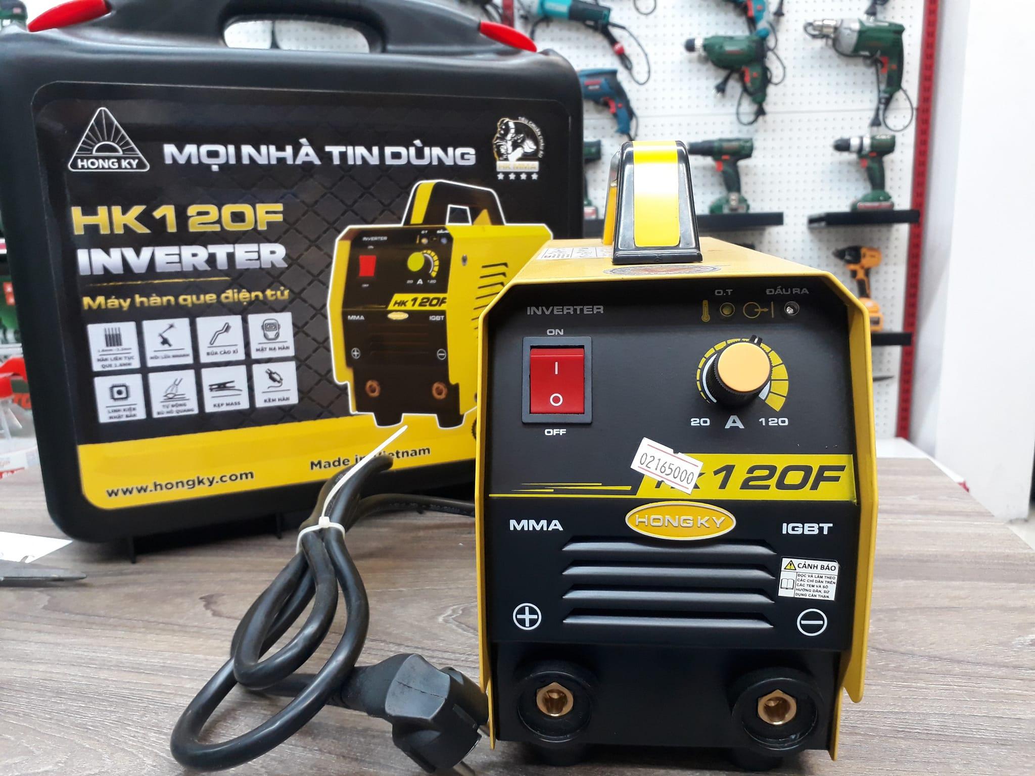 Máy hàn điện tử HK 120F được Hồng Ký sản xuất dành riêng cho gia đình. Máy có thiết kế nhỏ gọn với trọng lượng chỉ 4.6kg. Máy được đựng trong thùng nhựa đen có tay xách giúp người dùng mang vác, di chuyển dễ dàng.