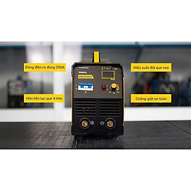 Ưu điểm nổi bật: - Cấp dây trong - Hiệu suất cao - Công suất đúng 250A - Súng hàn 3m - Dây mát 3m - Cơ chế tiết kiệm điện - Hàn công nghiệp